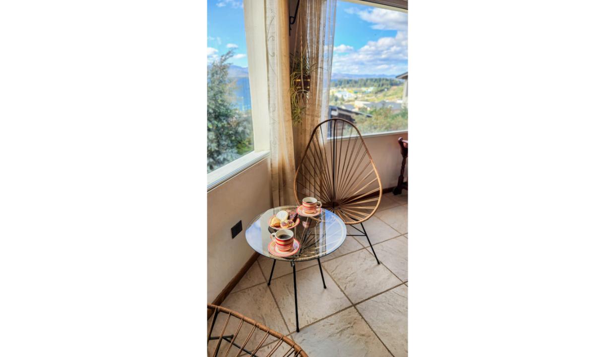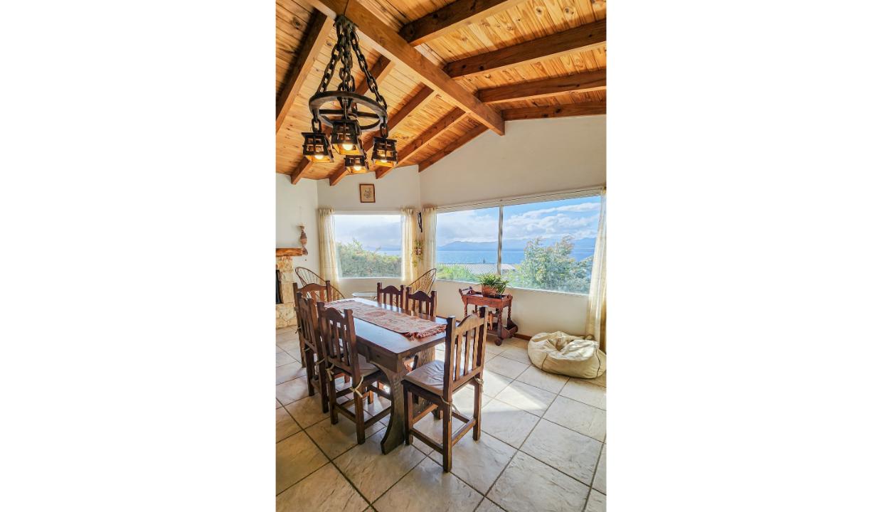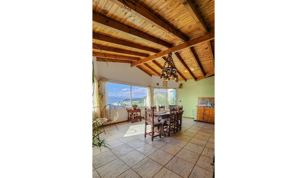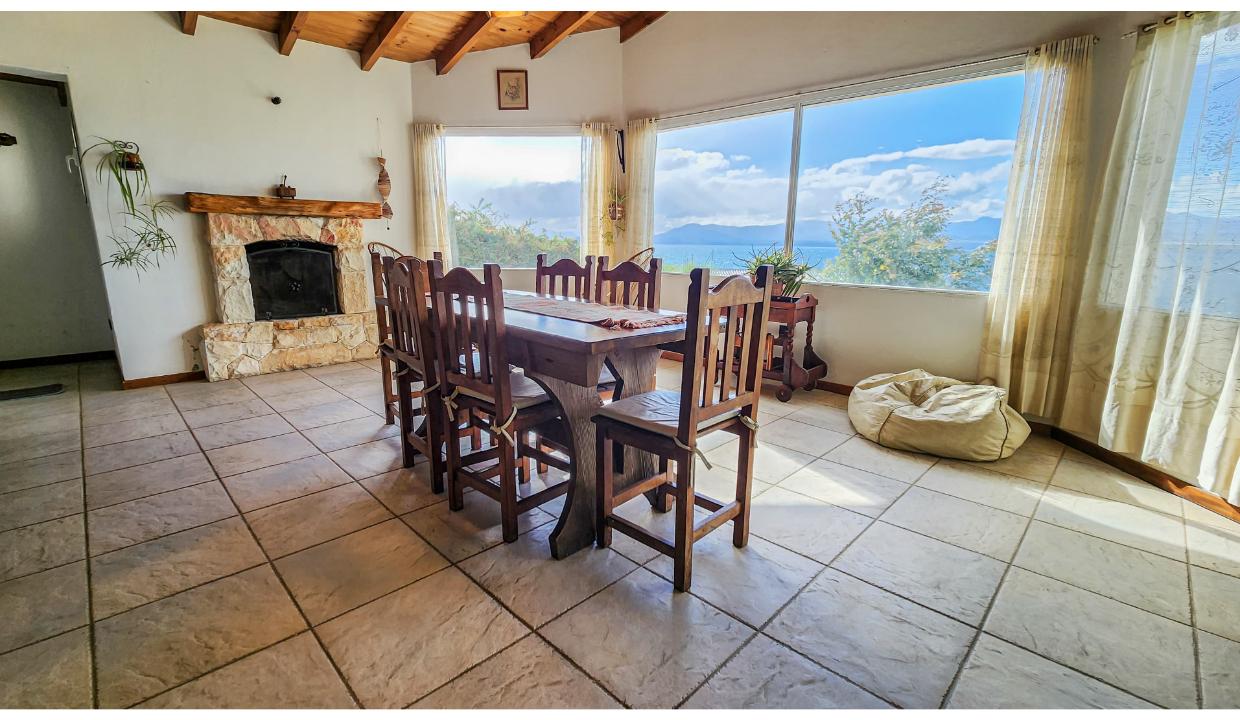 Un baño con hidromasaje. Cocina comedor equipada, hogar, espectacular vista al lago.