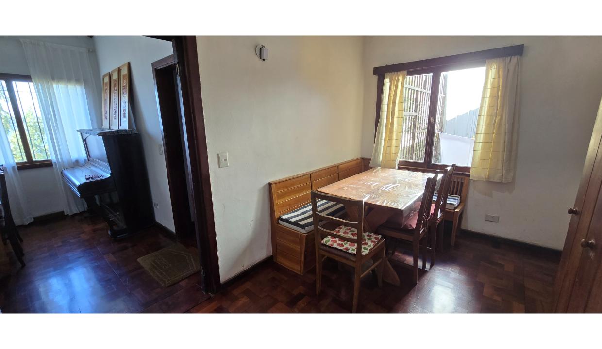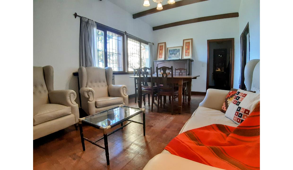 La casa cuenta con 2 habitaciones matrimoniales (una de ella se puede separar en dos) 1 habitación con 3 camas de 1 plaza, y otra habitación 2 camas de 1 plaza, 2 baños, cocina completa, comedor con hogar y Tv (no tiene cable). Quincho con uso solamente en verano. Cochera.