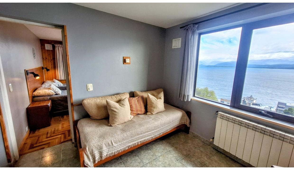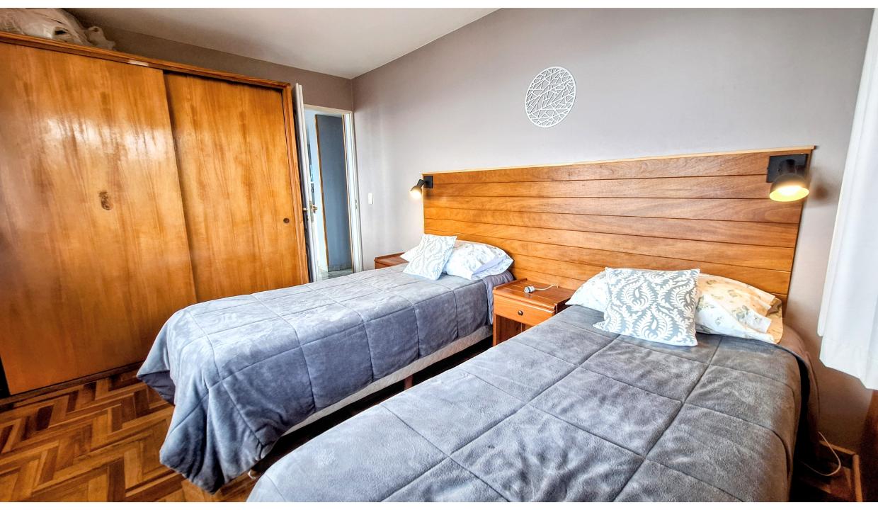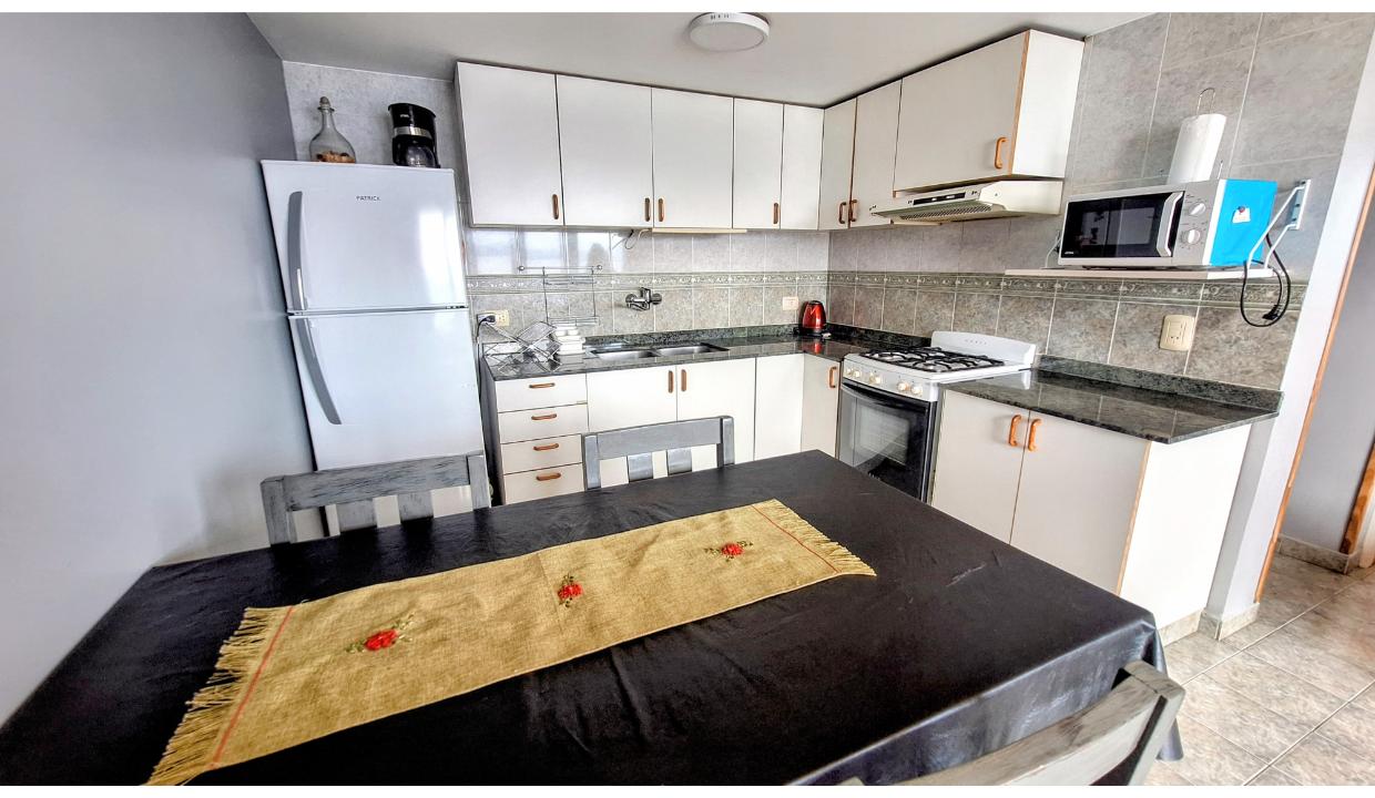 Departamento equipado para 4/5 personas en el centro de la ciudad sobre calle tucuman. Cuenta con una habitación matrimonial donde las camas se pueden separar en 2 individuales, otra habitacion con 2 camas simples. Un baño completo. Living con cama para 1 persona más. Cocina equipada, hermosa vista frontal al lago. Wifi, Cable, ropa blanca. Cochera, lavarropas. Acepta mascota pequeña (consulte)