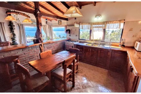 Departamento para 6 personas, con una habitación matrimonial y otra habitación separada por un mueble (sin puerta) con 2 camas individuales y una cama marinera. Un baño con ducha. Cocina equipada. Cable, wifi. Ropa blanca. Estacionamiento. Vista al lago. Jardin compartido con parrilla con vista al lago.