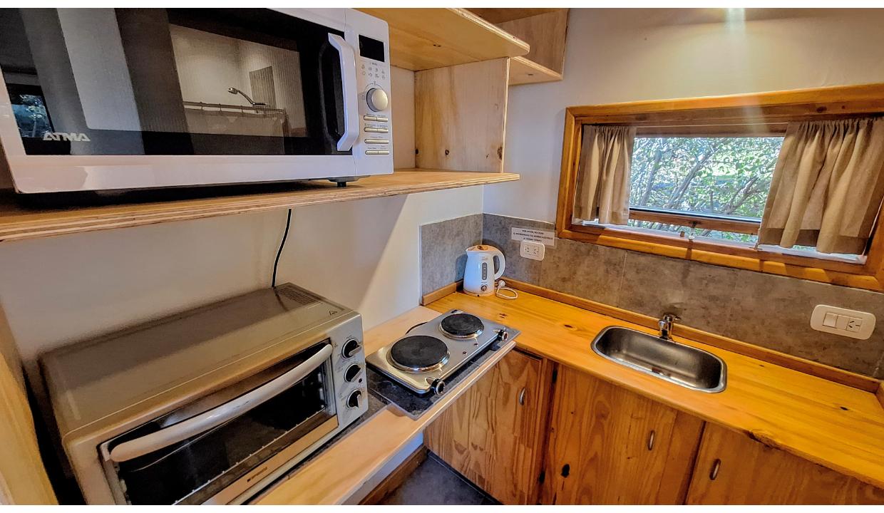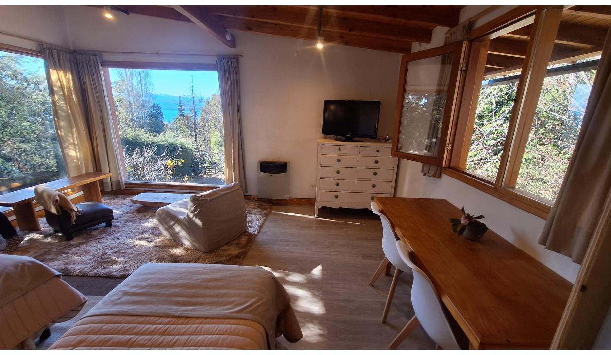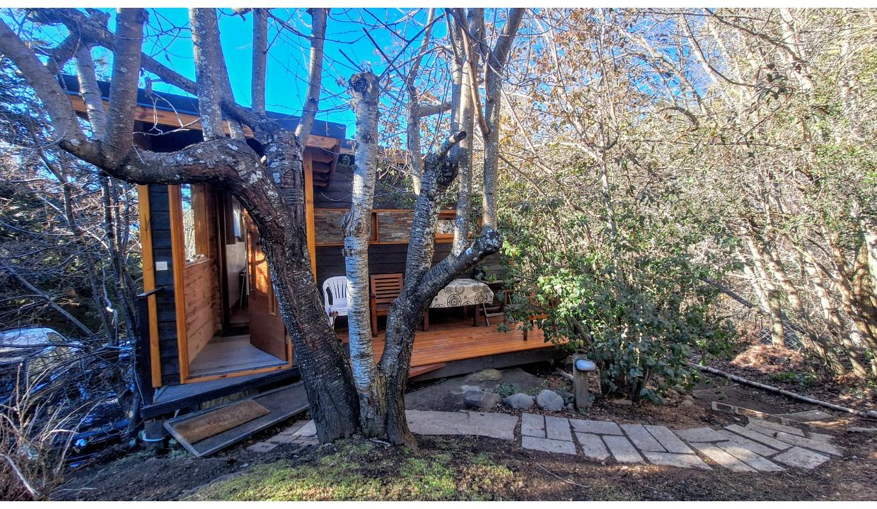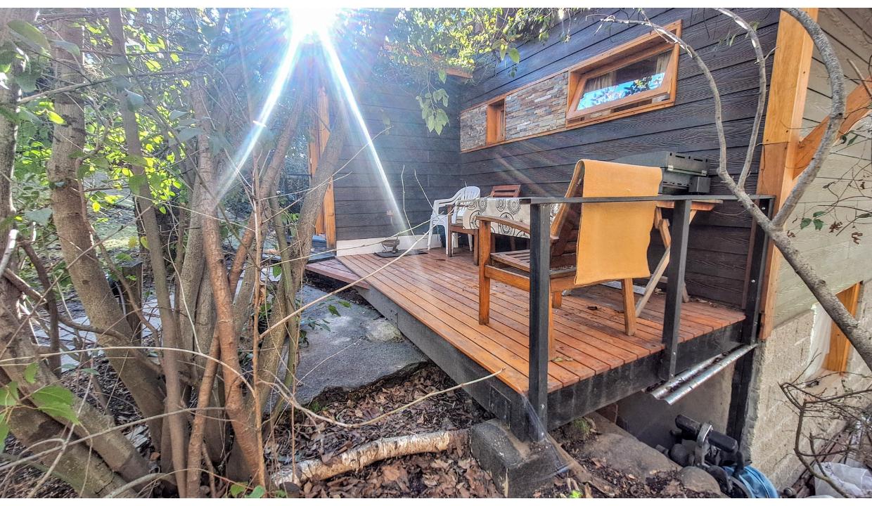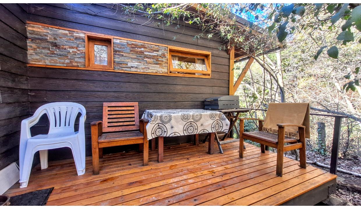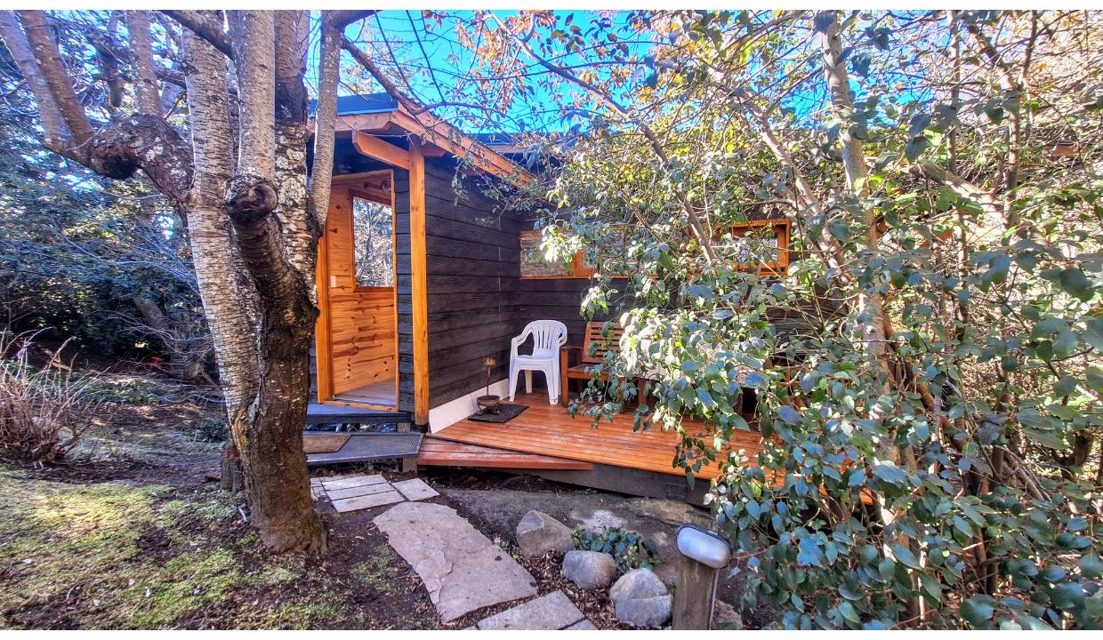 Cabaña rodeada de naturaleza, tipo monoambiente para 2 personas. Ubicada en melipal, cerca de centro comercial. Tiene cable y wifi. Horno eléctrico, microondas, anafe electrico 2 hornallas , heladera con freezer, tostadora y Pava eléctrica. Puede ser con cama matrimonial o 2 camas simples. Baño con ducha. Estacionamiento. Vista al lago. Hermoso deck con parrilla electrica y mesas y sillas de jardin. Vista al lago.