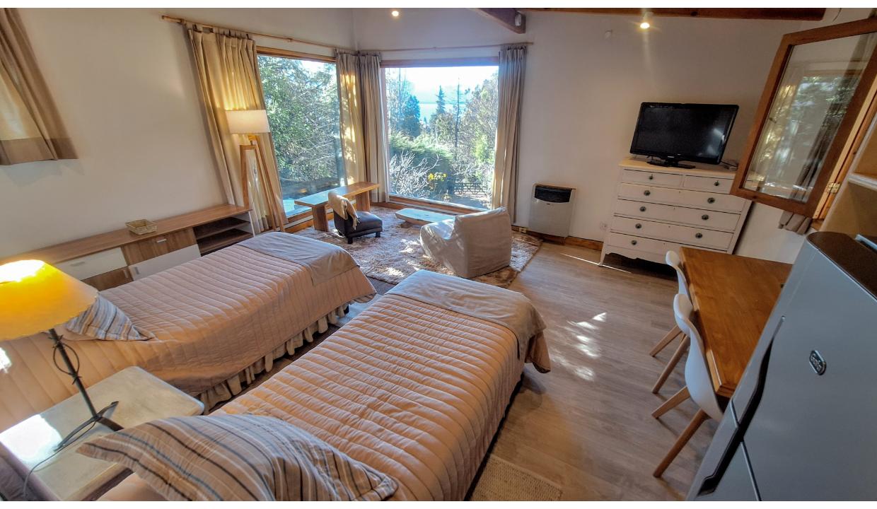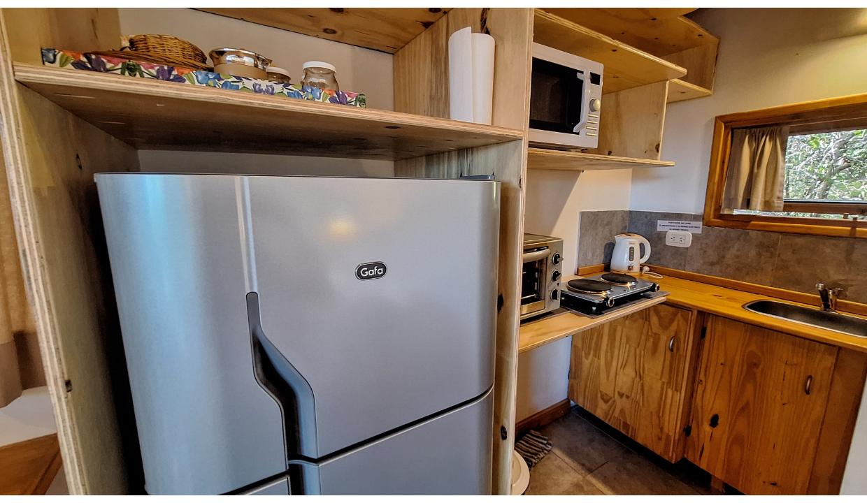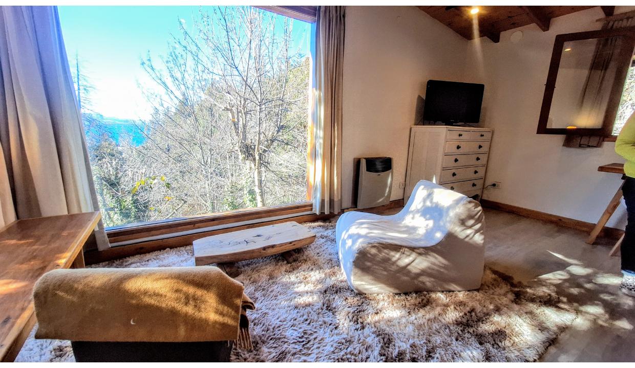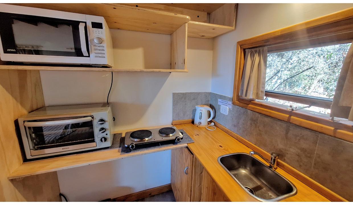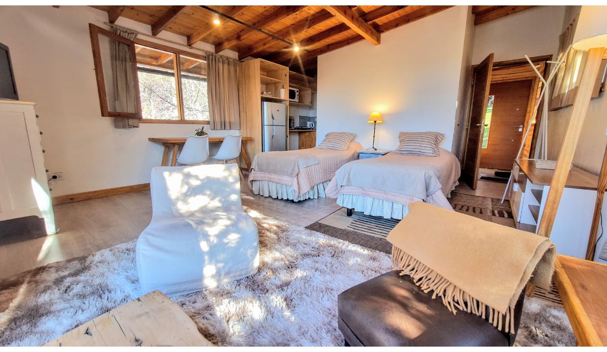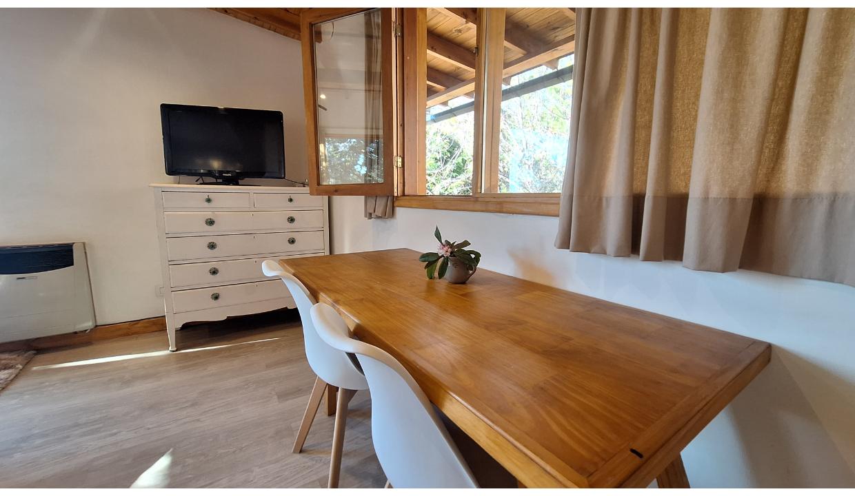 Cabaña rodeada de naturaleza, tipo monoambiente para 2 personas. Ubicada en melipal, cerca de centro comercial. Tiene cable y wifi. Horno eléctrico, microondas, anafe electrico 2 hornallas , heladera con freezer, tostadora y Pava eléctrica. Puede ser con cama matrimonial o 2 camas simples. Baño con ducha. Estacionamiento. Vista al lago. Hermoso deck con parrilla electrica y mesas y sillas de jardin. Vista al lago.