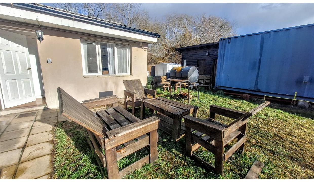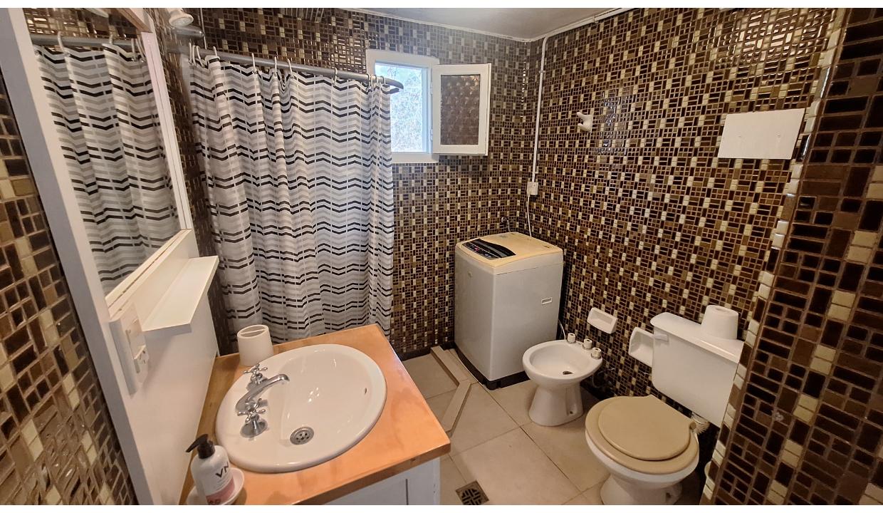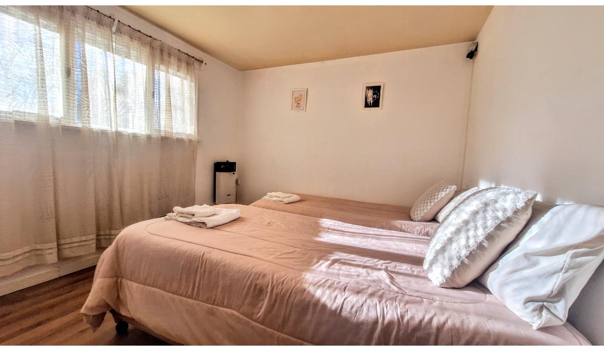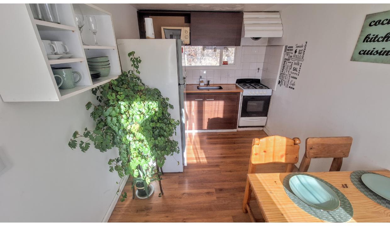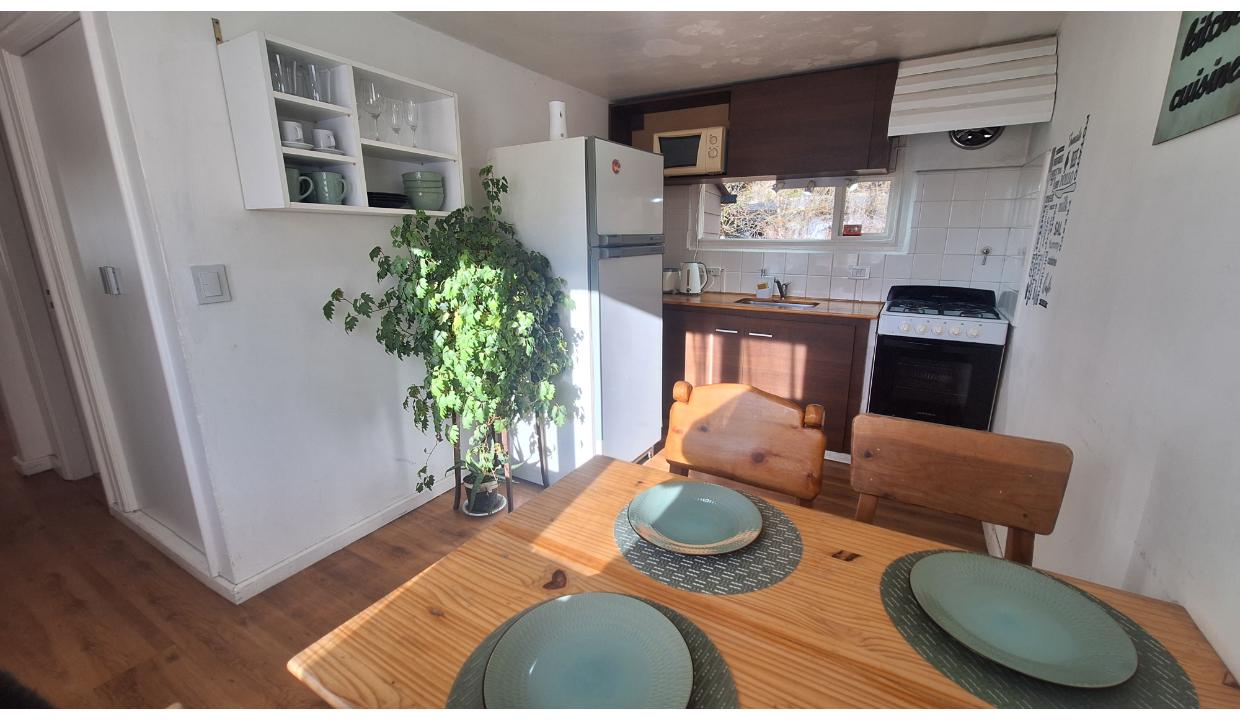 La casa tiene dos habitaciones, 1 matrimonial y otra con 2 camas individuales. Baño, cocina completa, living y comedor.