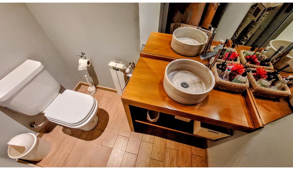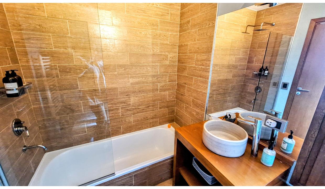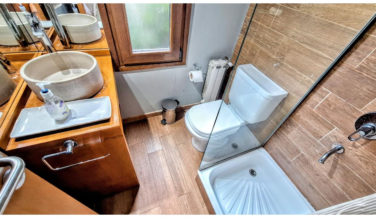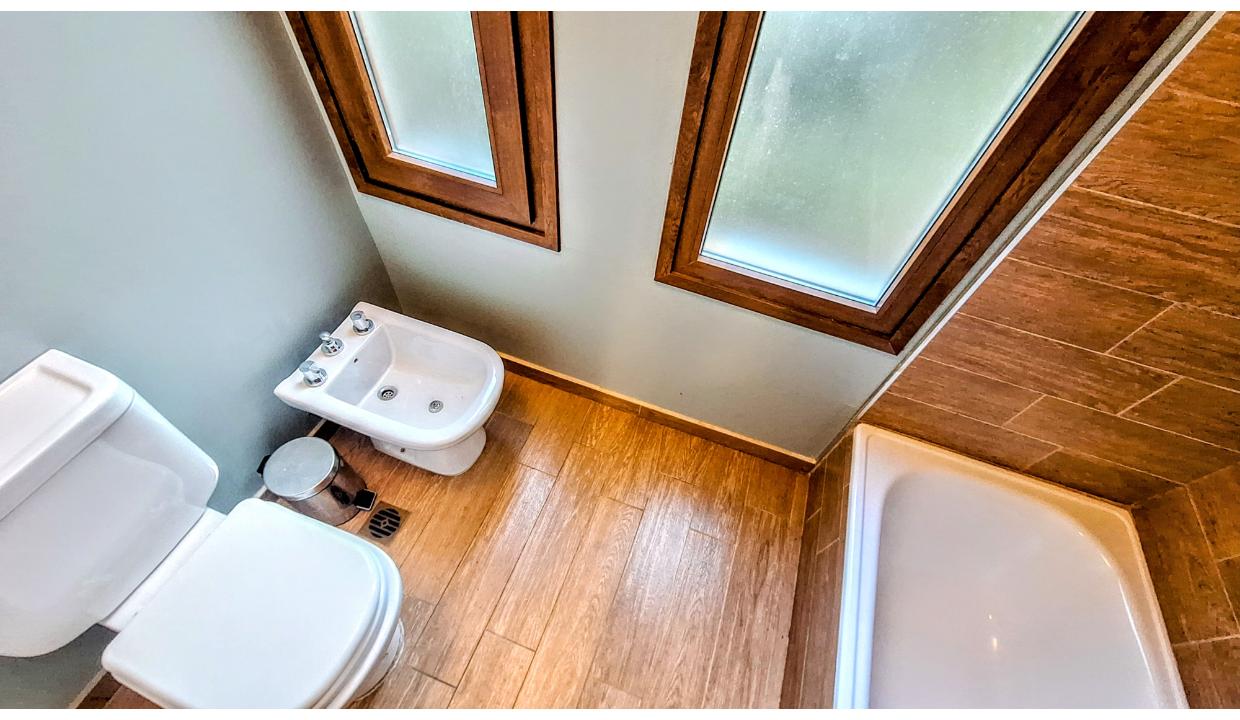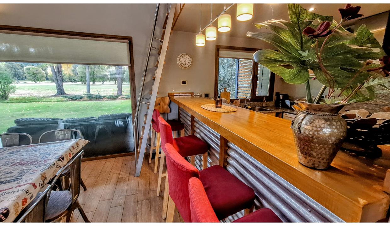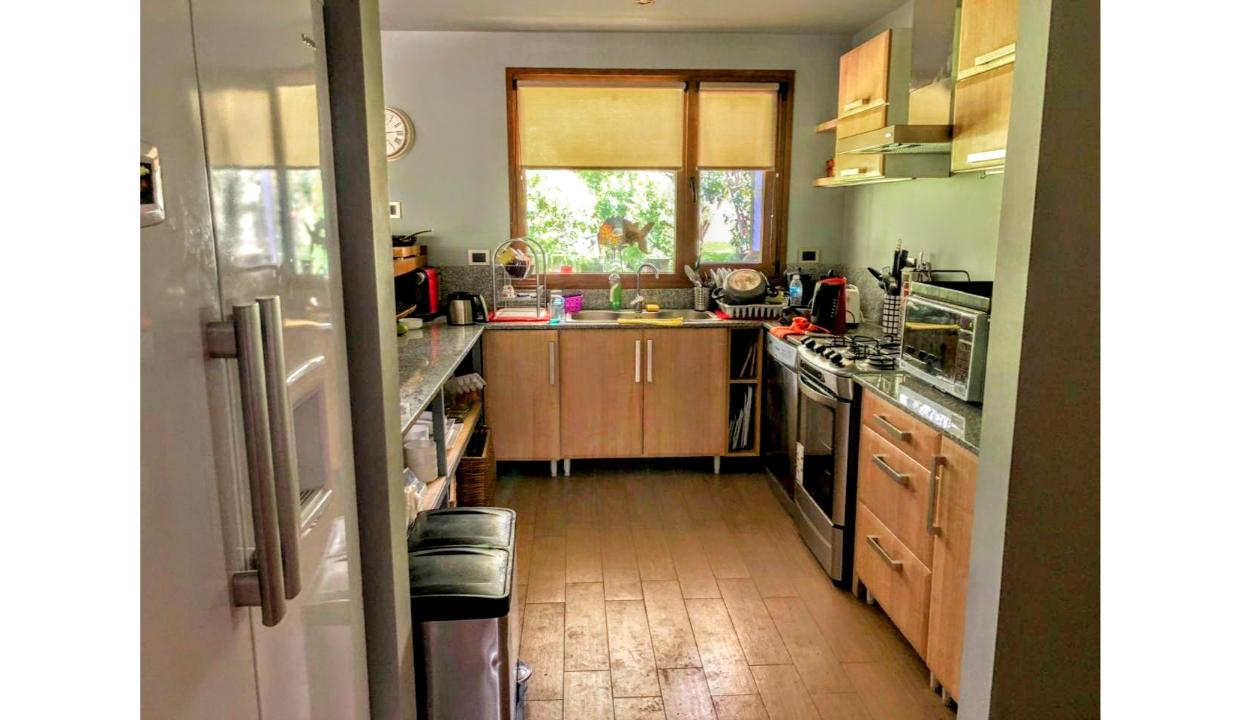 *cocina con barra y asientos *living/comedor con chimenea, sofa cama doble, mesita comedor con 4 sillas *Toilette en planta baja *galería techada con parrilla y living externo