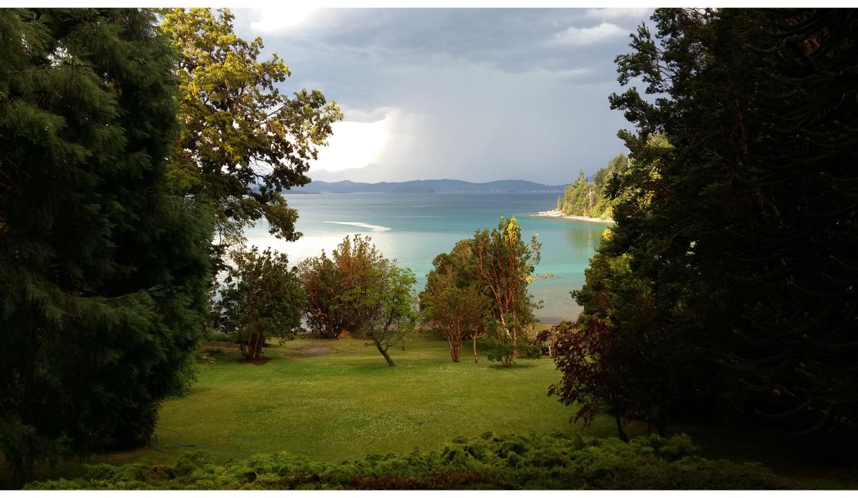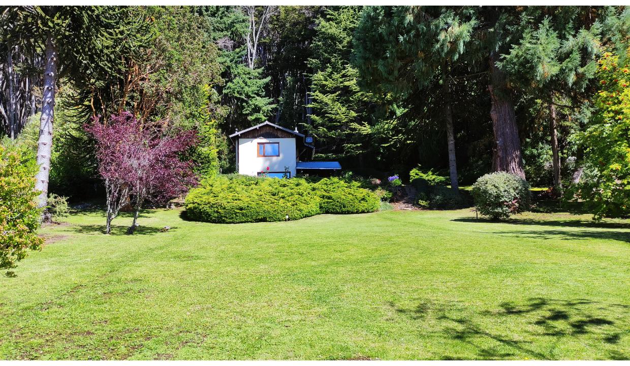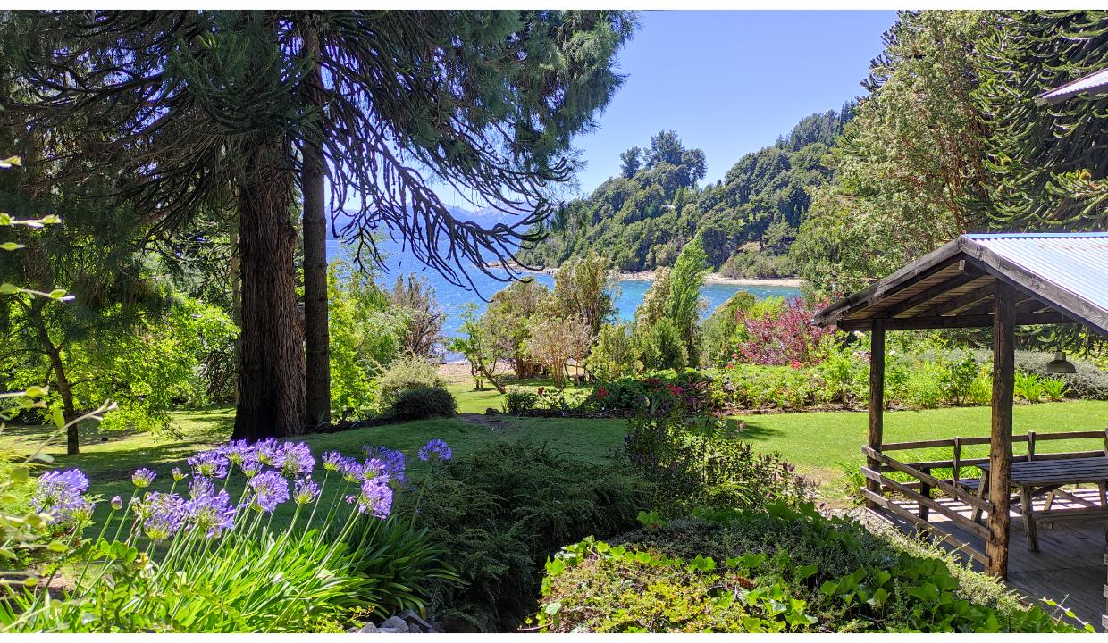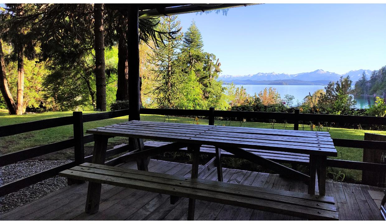 Huapi, con inmejorable vista, en un gran jardín de poca pendiente, con costa propia, parrilla-fogonero y mesa