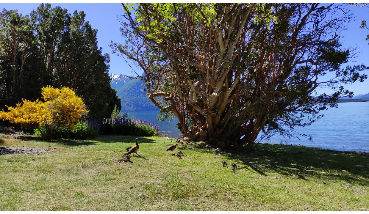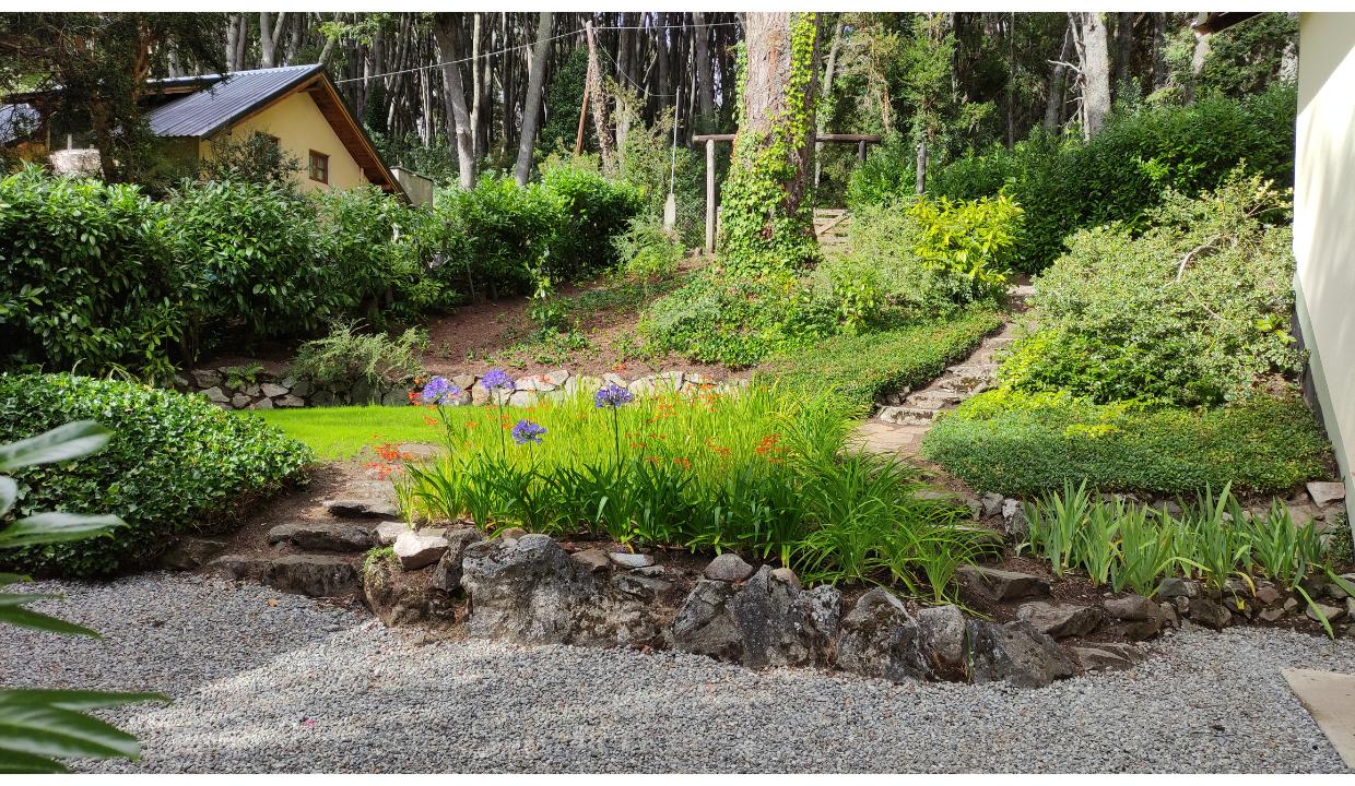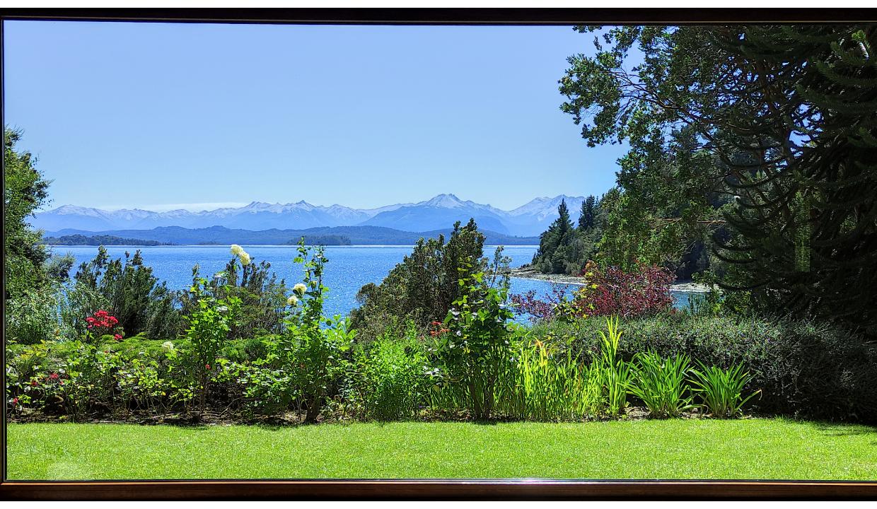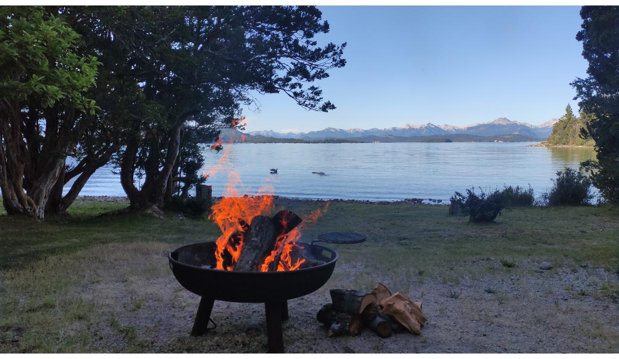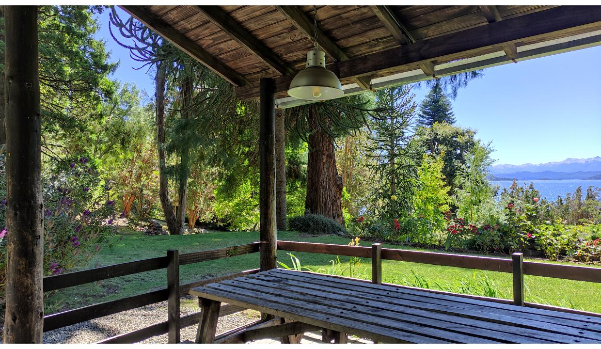 Huapi, con inmejorable vista, en un gran jardín de poca pendiente, con costa propia, parrilla-fogonero y mesa