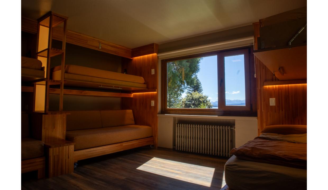 • Dormitorio séxtuple con 3 camas nórdicas individuales y 3 camas superiores que se pueden abatir. Este