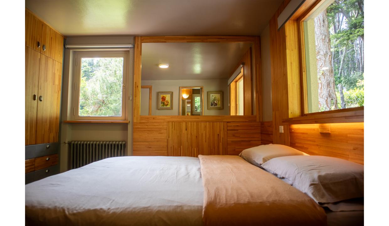 hacia el bosque y jardín lateral. Baño en suite equipado con cabina de ducha, inodoro, bidet y vanitory