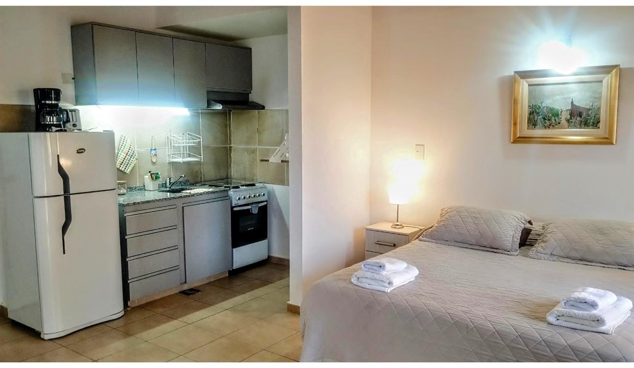 Monoambiente en barrio Las Victorias, a 7 minutos del centro en auto, equipado para 2 personas. Cama matrimonial, Cocina completa, baño con ducha. Tv, wifi, ropa blanca. Patio compartido. Parrilla