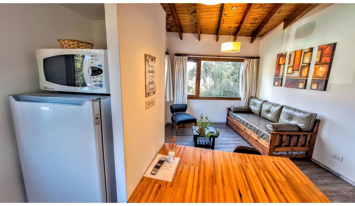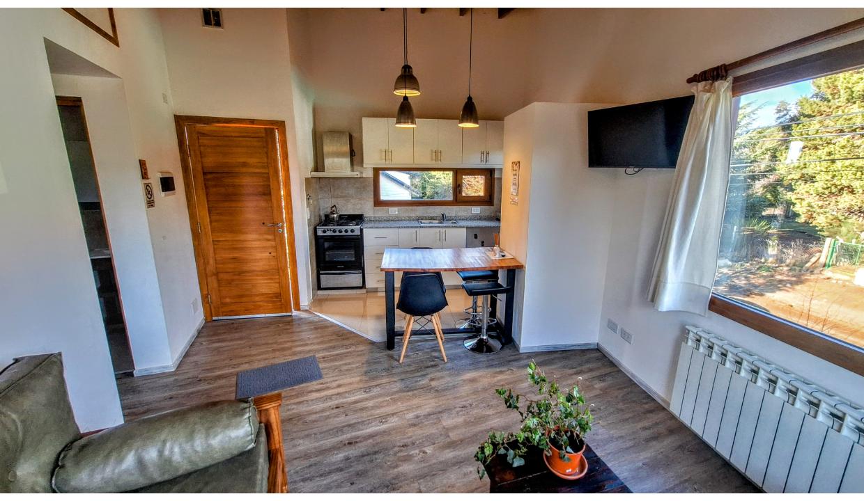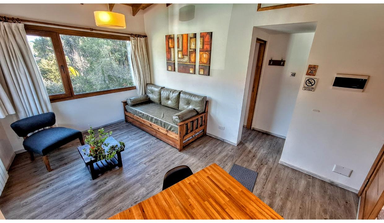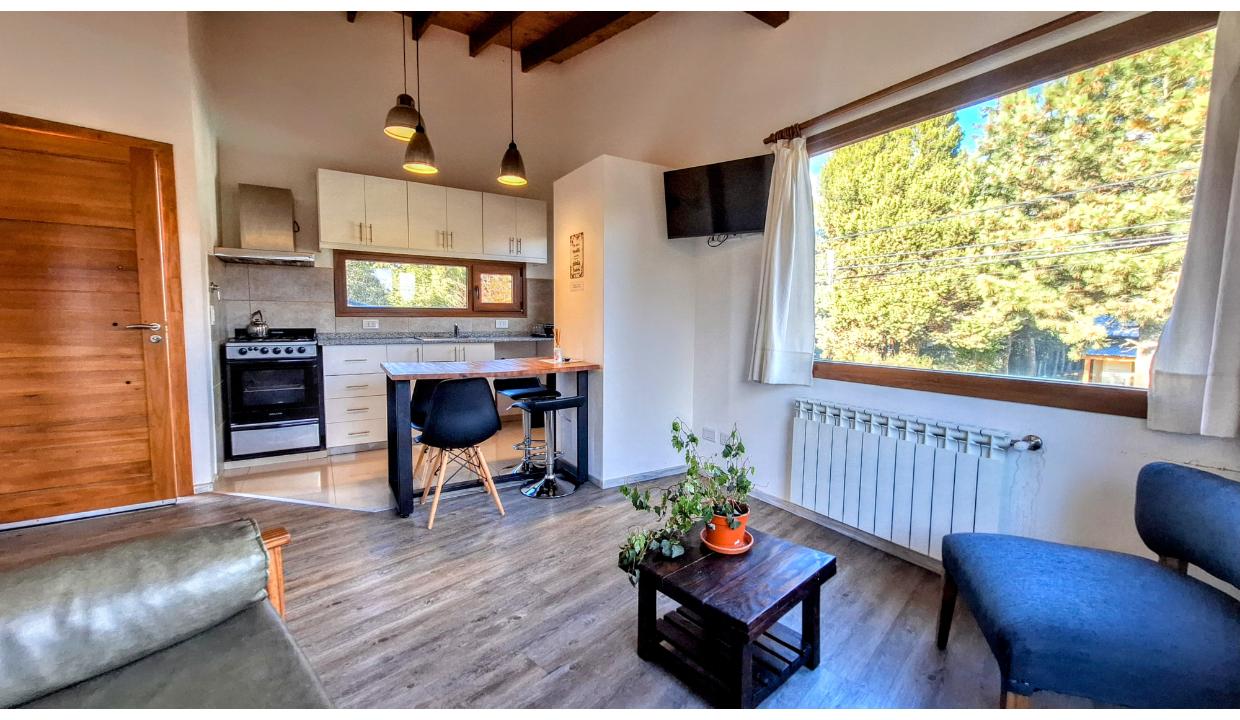 Departamento a estrenar equipado para 4 personas. Cuenta con una habitación matrimonial, cama carrito en el living, cocina equipada. Un baño completo. Cable, wifi, ropa blanca. Jardin compartido con parrillas. Estacionamiento. Se ingresa por escaleras.