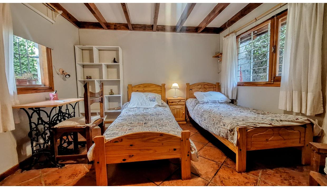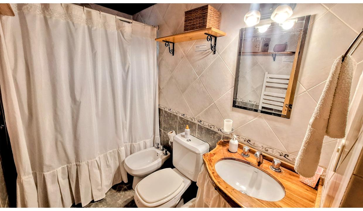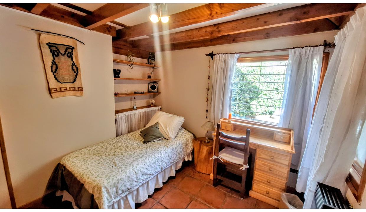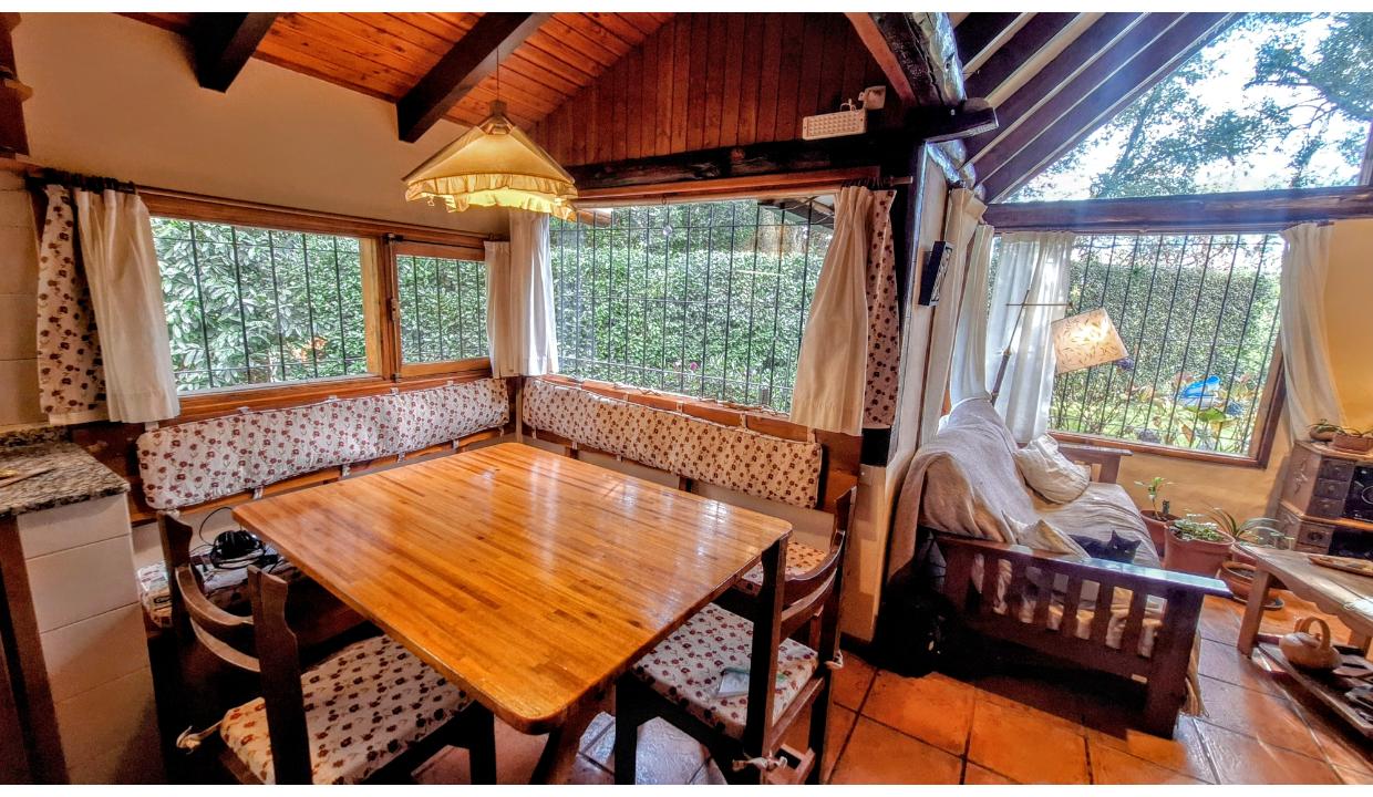 Cabaña independiente, equipada para 5 personas , ubicada en km 7.5 a 2 cuadras de pioneros, cerca del cruce a cerro catedral y de playa bonita. Cuenta con 1 habitación matrimonial, 1 con 2 camas simples y otra con una cama individual. Dos baños con ducha. Cocina equipada, living con tv. Amplio jardín. Chulengo. El auto se deja en la puerta.