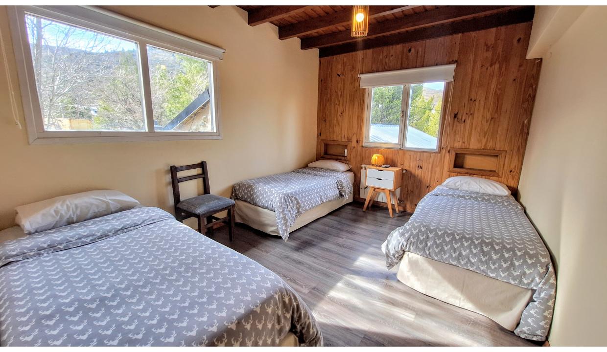 La casa cuenta con 10 habitaciones (matrimoniales, dobles, triples y una cuádruple con cuchetas) se pueden armar según como desee cada grupo. Cada habitación tiene un baño en suite con ducha. Caja de seguridad en todas las habitaciones. Living con hogar a leña y baño de visitas. Gran salón comedor y cocina equipada para grupos grandes. Lavavajillas para 15 cubiertos. Calefacción por radiadores. Cuarto guarda tablas y/o valijas, lockers para guardar botas. Parque con espacio de parrilla, cruz, fogonero, horno pizzero. Mesas y bancos de jardín. Hot Tub con vista a las pistas del cerro. Ducha a su lado. Recambio de toallas 2 veces por semana, sabanas 1 vez por semana. Wifi fibra óptica. Alarma monitoreada Puede solicitar servicio de chef con costo adicional.