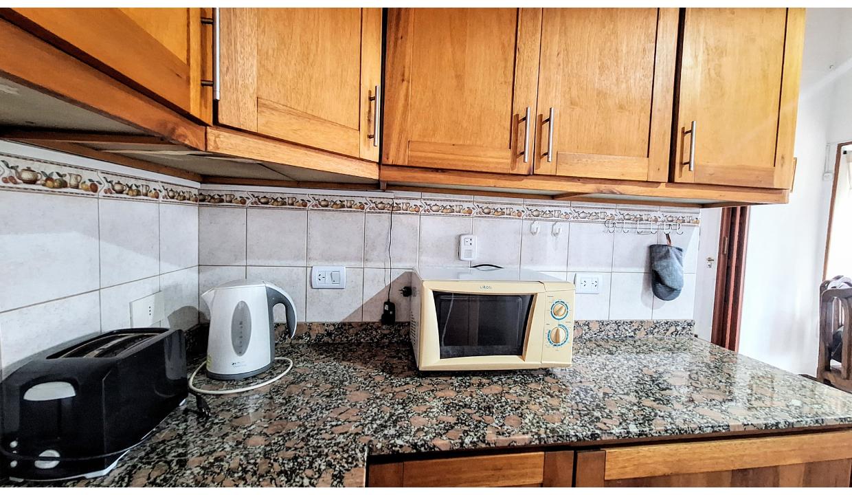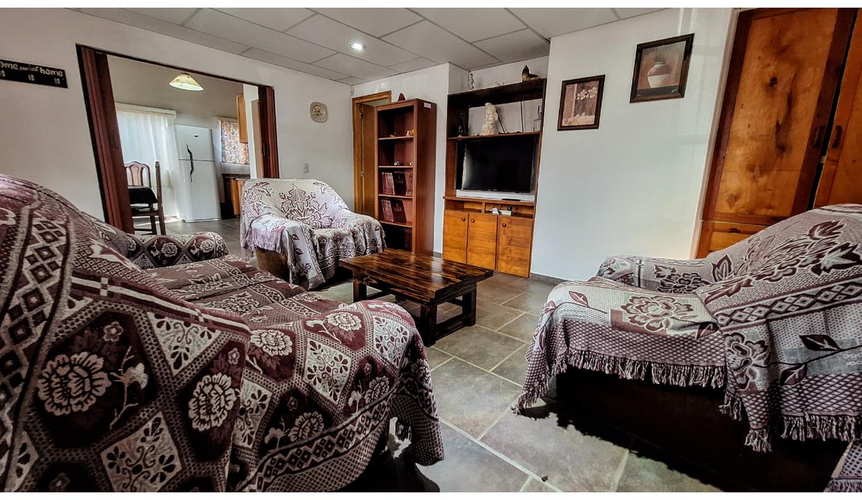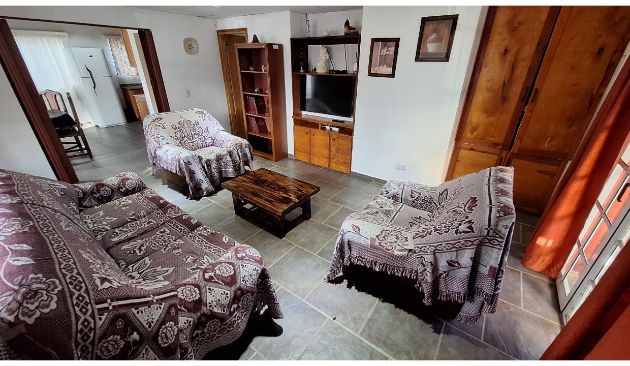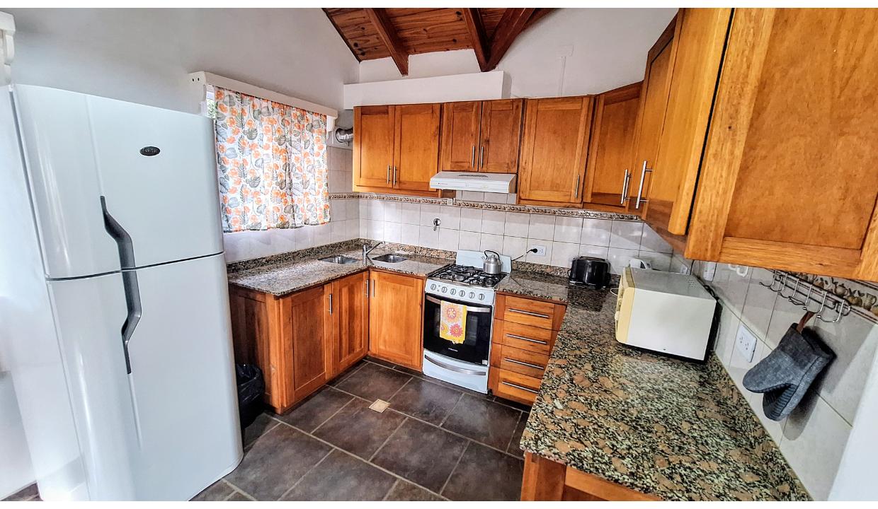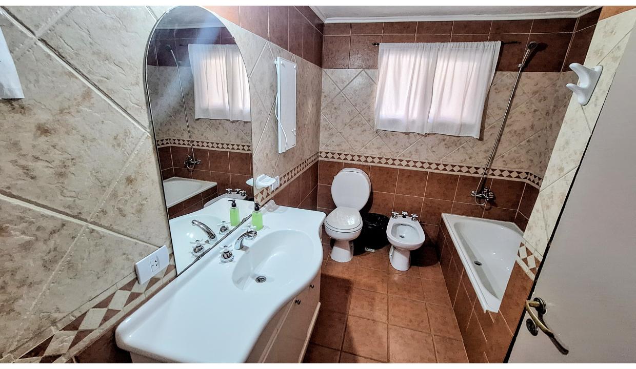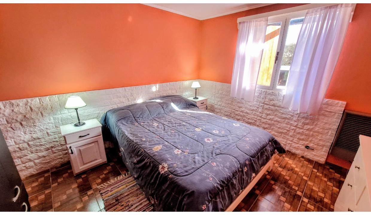 Amplia casa de 3 habitaciones para 6 personas. Cuenta con 1 matrimonial y 2 con 2 camas simples. Baño completo con bañera y ducha separadas. Living con tv, comedor y cocina equipada. Lavadero con lavarropas. Estacionamiento techado y pequeño jardín delantero. cepta mascota pequeña (consulte)