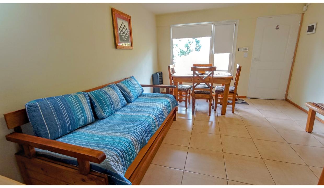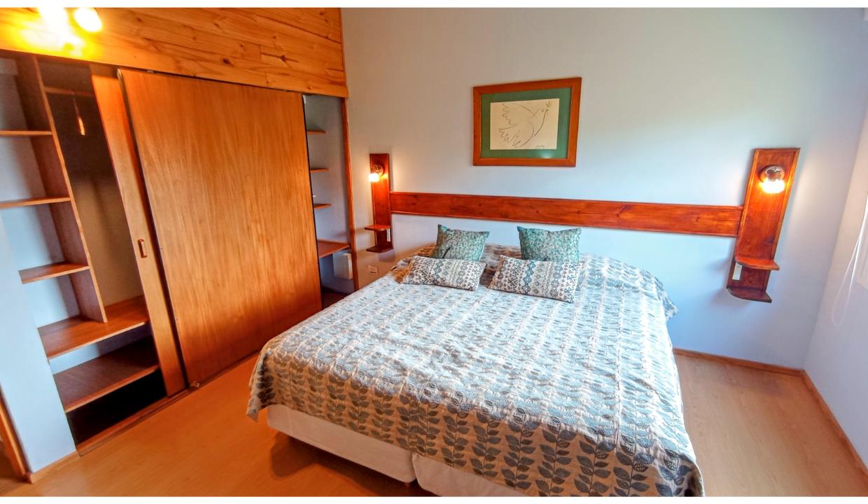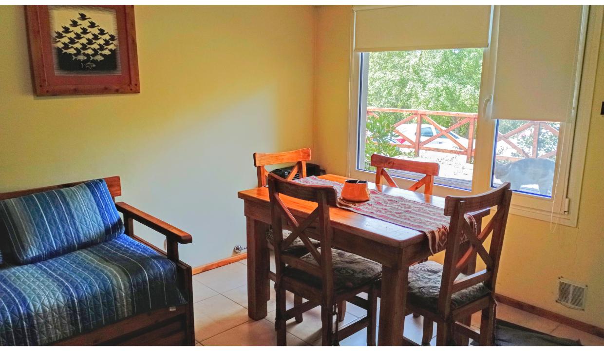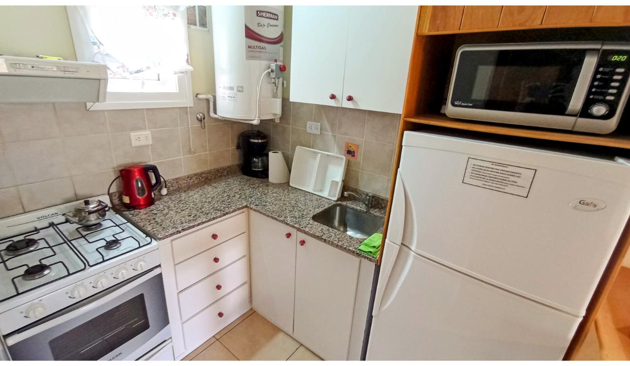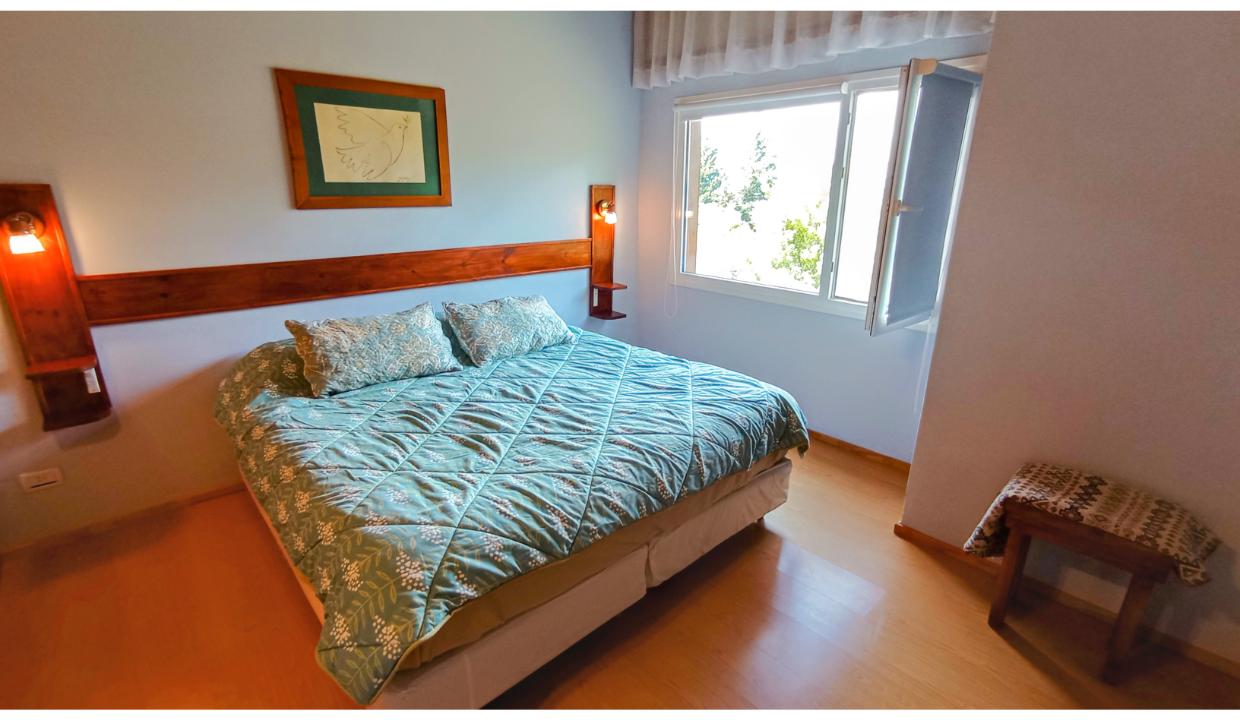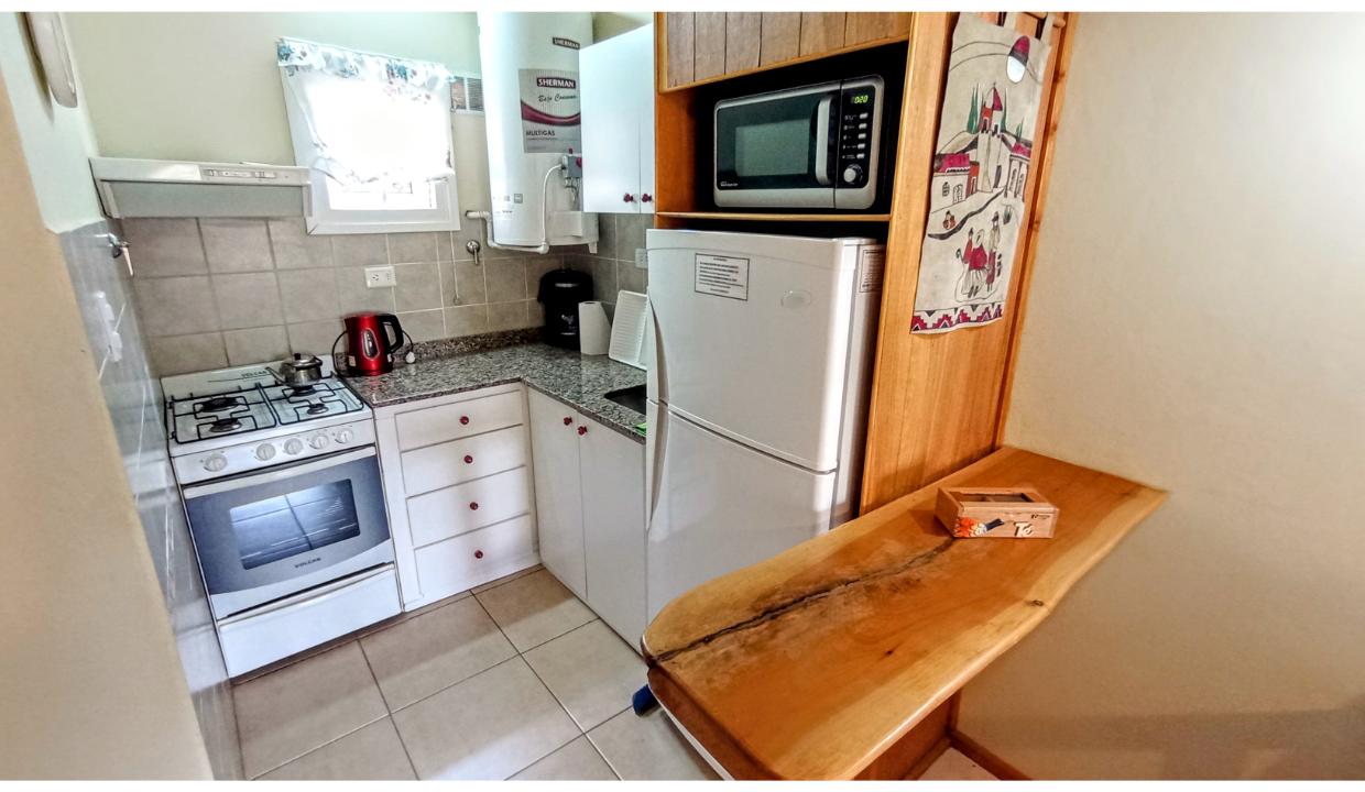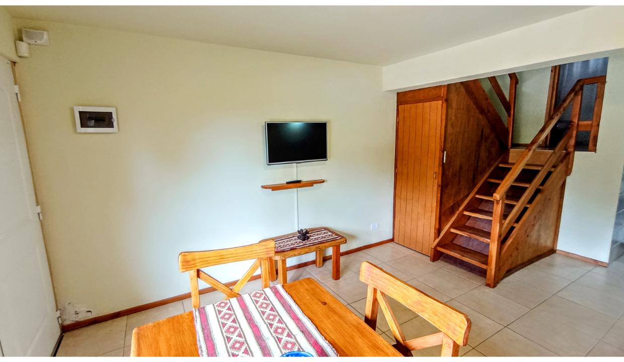 Dos departamentos para 4 personas cada uno, contiguos, iguales. Cada uno tiene en la planta alta una habitación matrimonial o se puede separar en 2 camas individuales. En la planta baja se encuentra el living comedor con una cama carrito cómoda, apto adultos y TV. Cocina equipada. Y en el descanso de la escalera un baño con ducha. Estacionamiento dentro del predio.