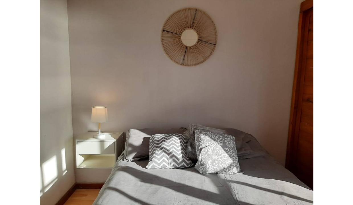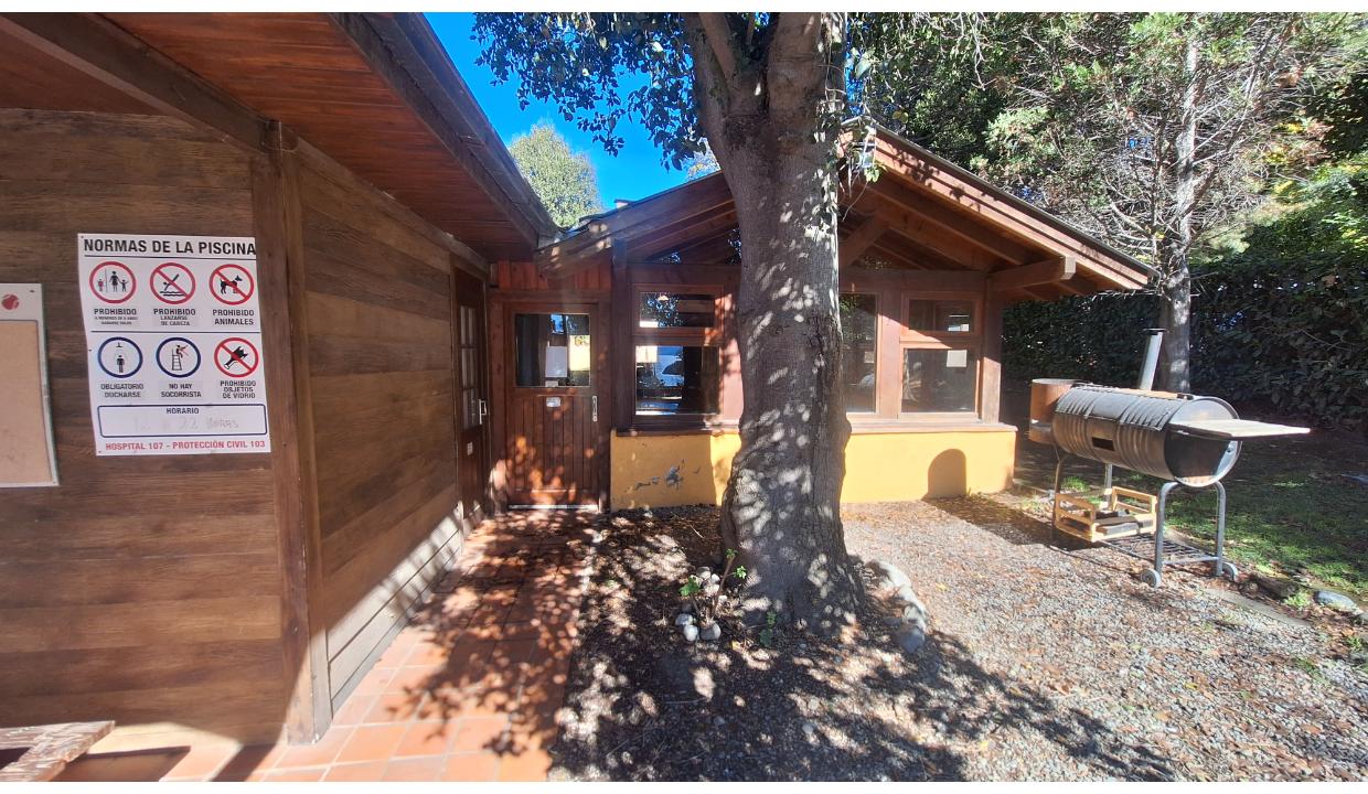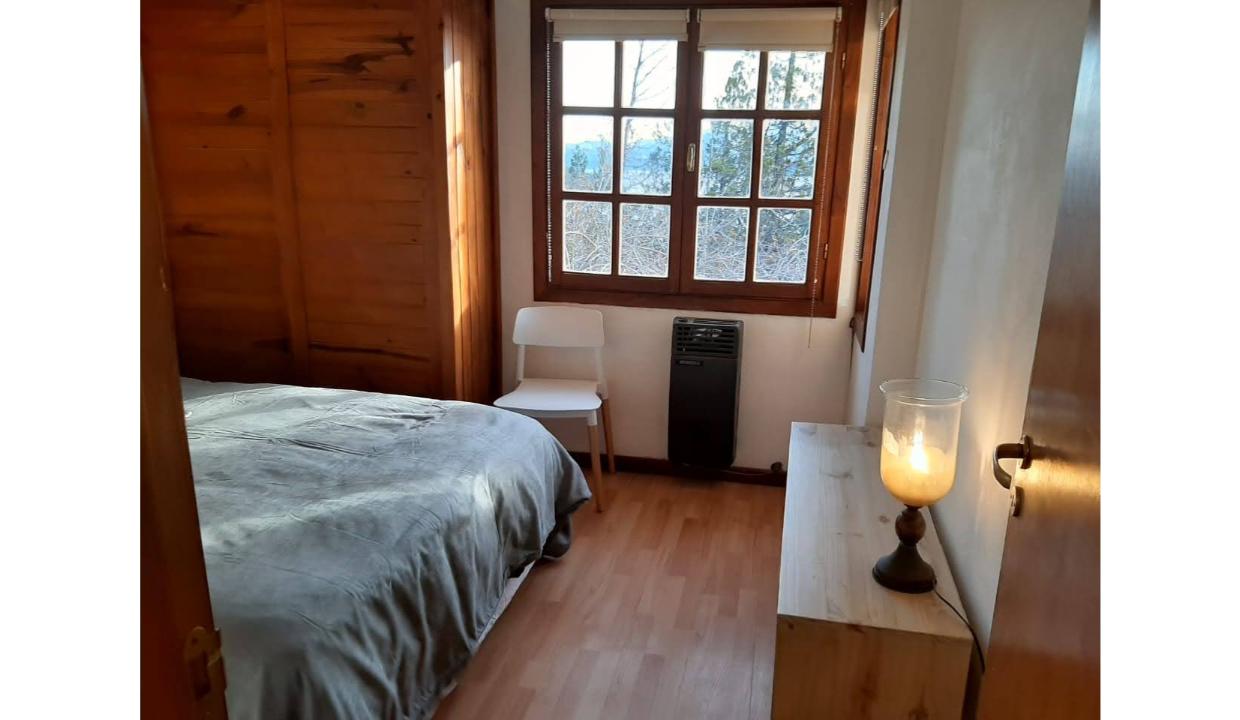 Nuestra cabaña se encuentra en un hermoso complejo a 10 minutos del centro de la ciudad. Esta equipada para 4 personas. Cuenta con cocina, comedor, 2 dormitorios ( uno matrimonial y uno para 2 personas). Dos baños, uno completo con bañera y un toillette. Tiene balcón con vista al lago. Las áreas comunes se comparten, el jardín, las parrillas, la piscina climatizada, el quincho con mesa de ping pong y metegol, baños, hogar y cocina.