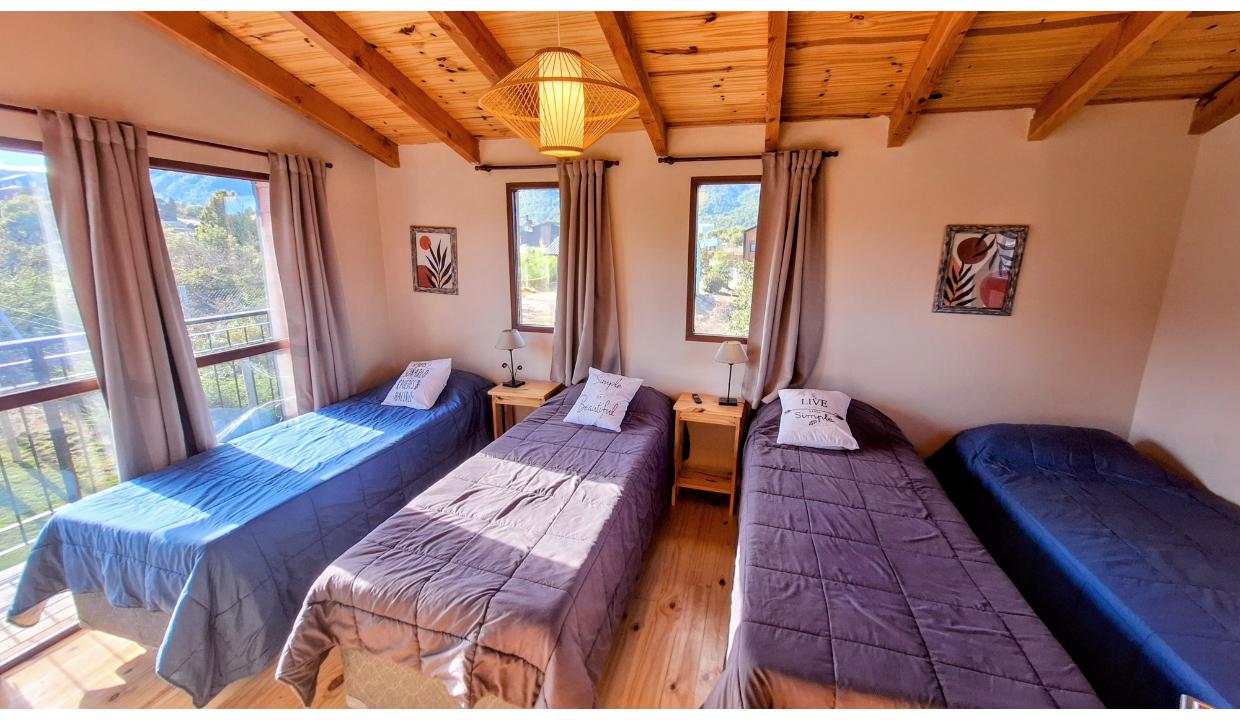 Ubicados a 15 minutos del centro de nuestra ciudad nuestro duplex está equipado para 6 personas. Cuenta con dos habitaciones…una matrimonial y otra con cuatro camas individuales. En la cocina encontrarán todo lo necesario para sentirse como en casa. Microondas. Vajilla. Elementos de cocina. Lavarropas. Jarra eléctrica. Smartv. Wifi.Alarma. Un baño y un toilette. Cámaras de seguridad. Portón eléctrico. Estacionamiento dentro del predio. Van a disfrutar de increíbles vistas a las montañas. Catedral. Cerro Carbón. Chalhuaco… Acepta mascota pequeña (consultar).
