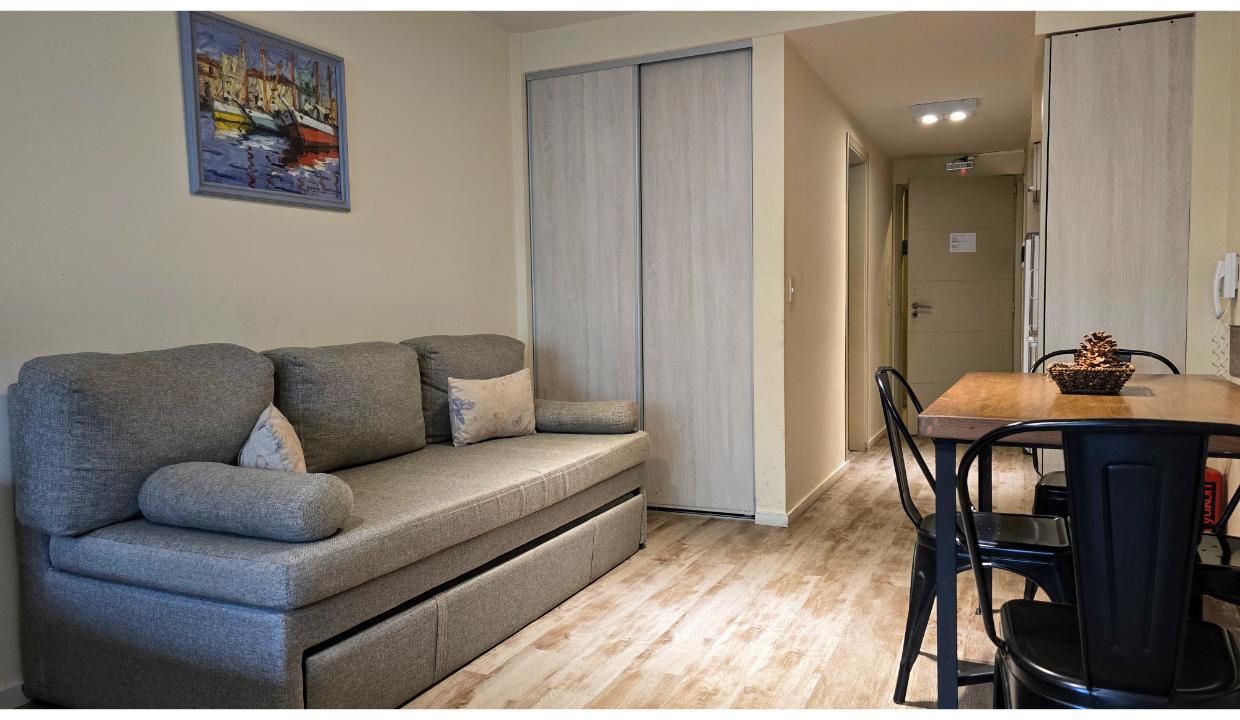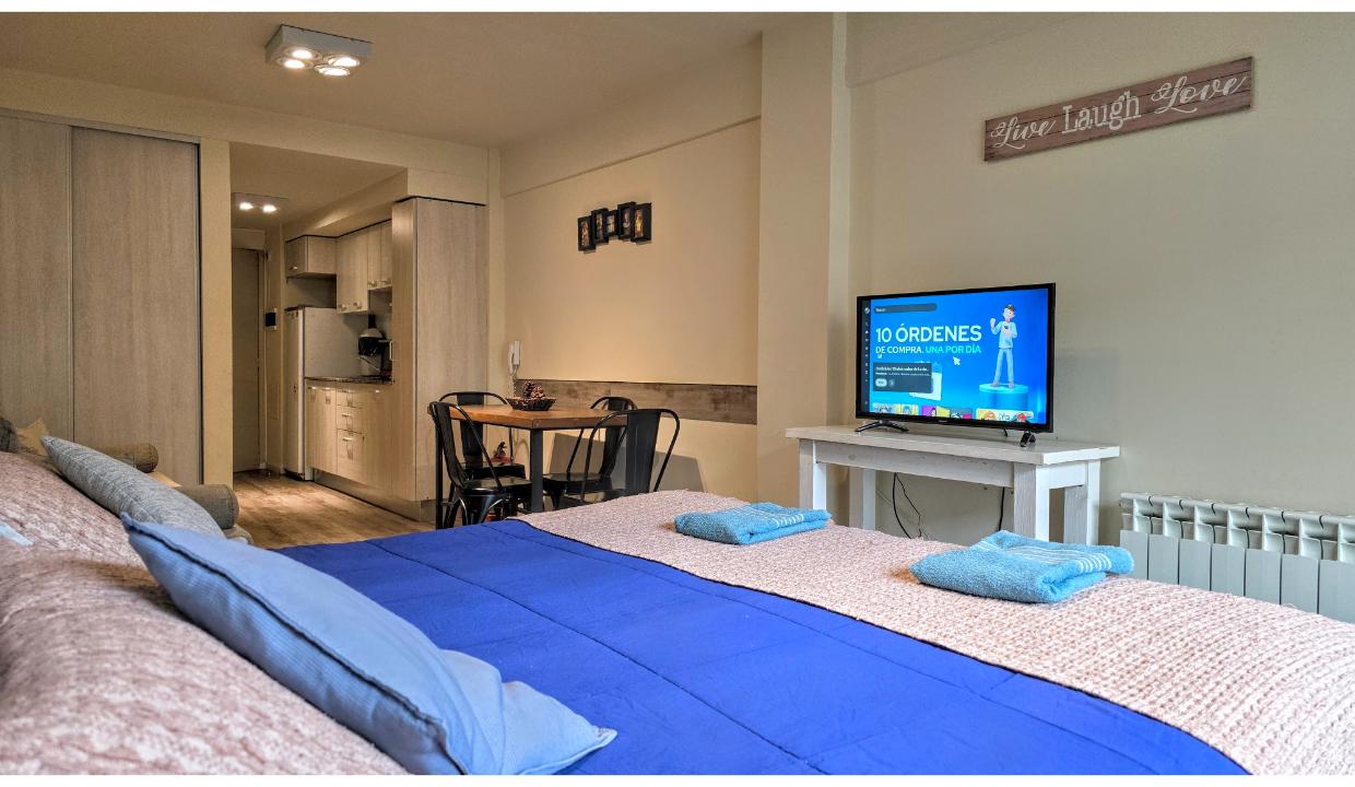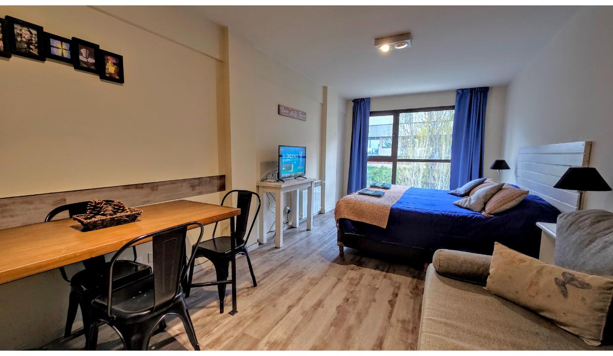 Ubicado en calle San Martin ,quinto piso contrafrente. Dpto totalmente monoambiente equipado (hasta 4 Pax). Cama matrimonial y 2 individuales o 4 individuales en caso de ser necesario. Cocina con anafe eléctrico,horno eléctrico,heladera,cafetera,pava eléctrica. Calefacción central. Ropa blanca Wifi