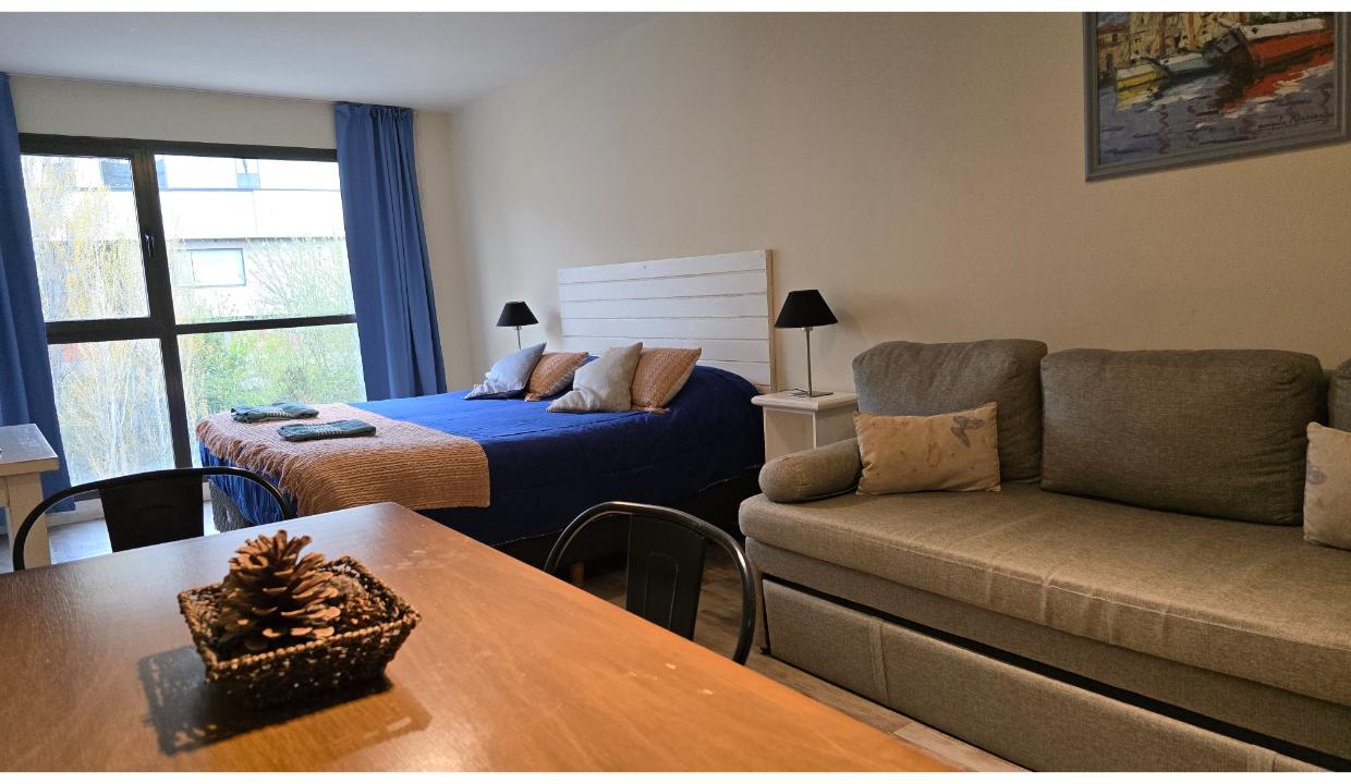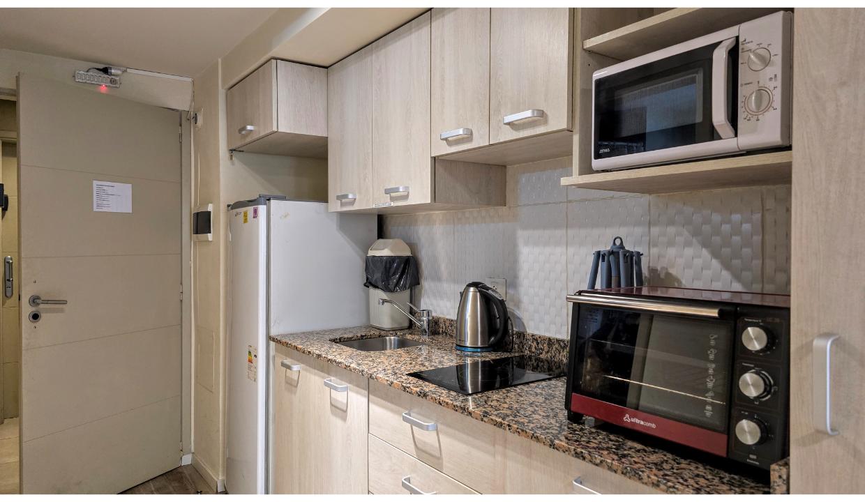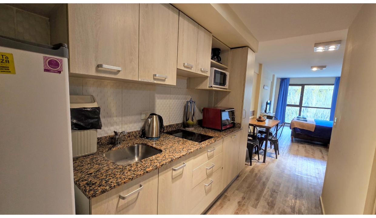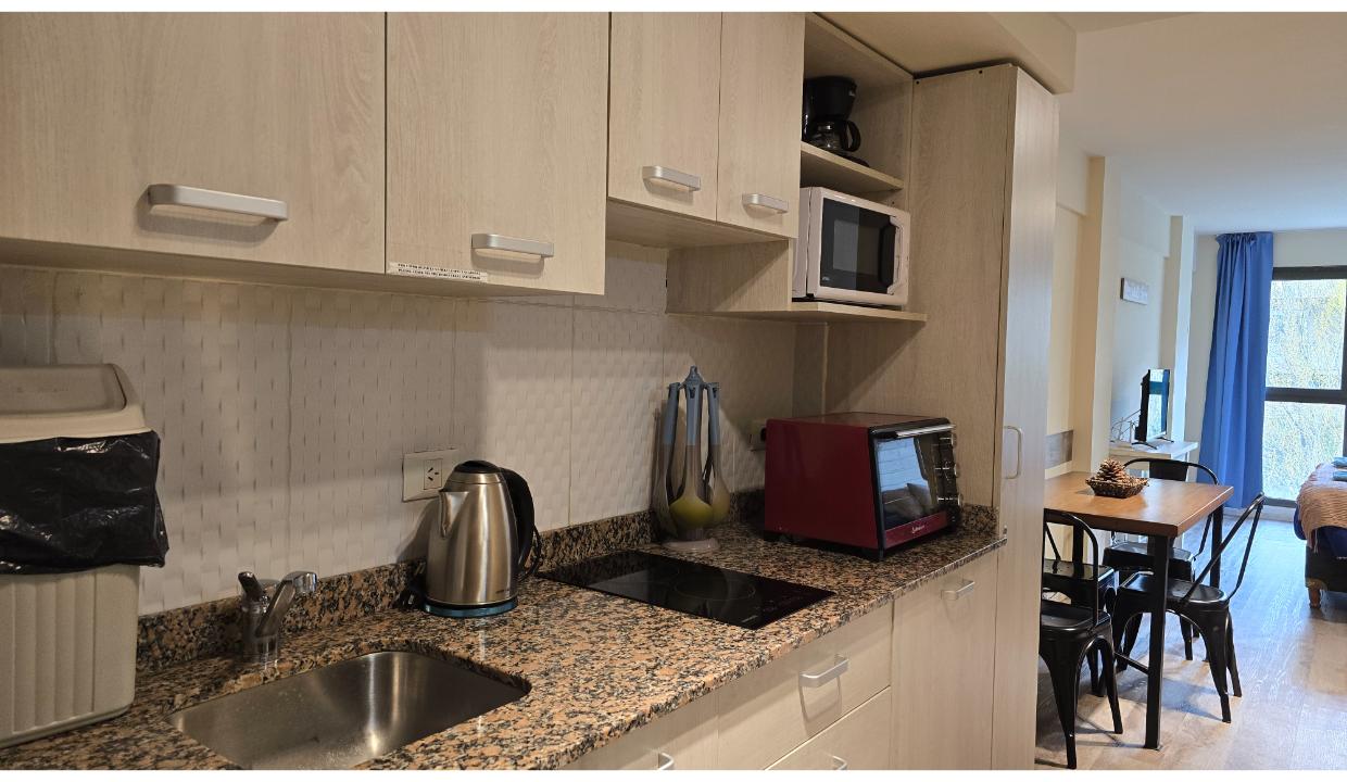 Ubicado en calle San Martin ,quinto piso contrafrente. Dpto totalmente monoambiente equipado (hasta 4 Pax). Cama matrimonial y 2 individuales o 4 individuales en caso de ser necesario. Cocina con anafe eléctrico,horno eléctrico,heladera,cafetera,pava eléctrica. Calefacción central. Ropa blanca Wifi