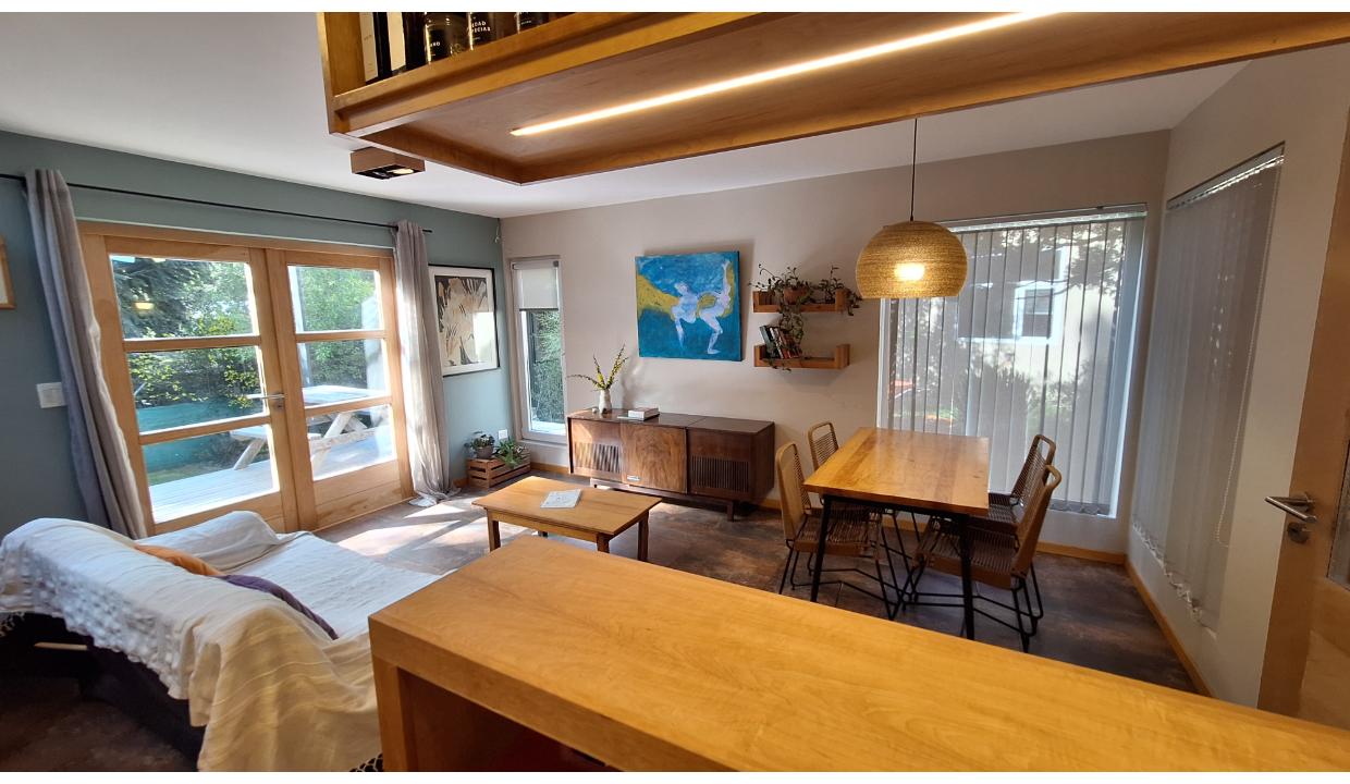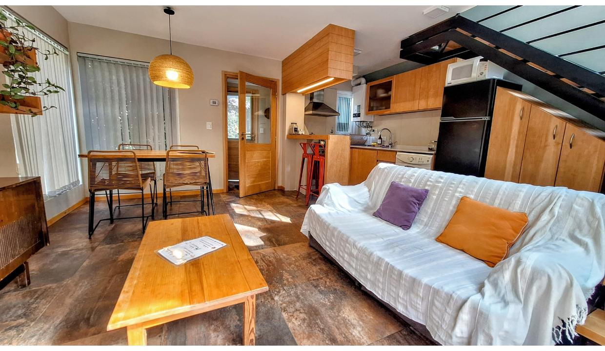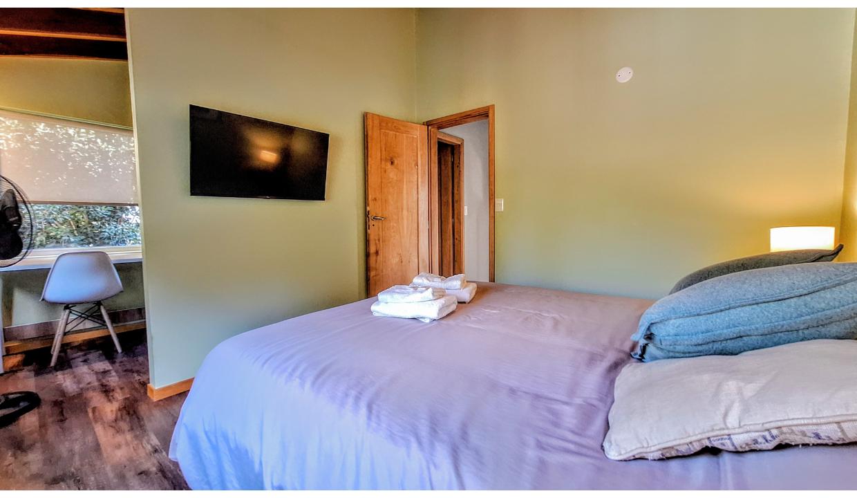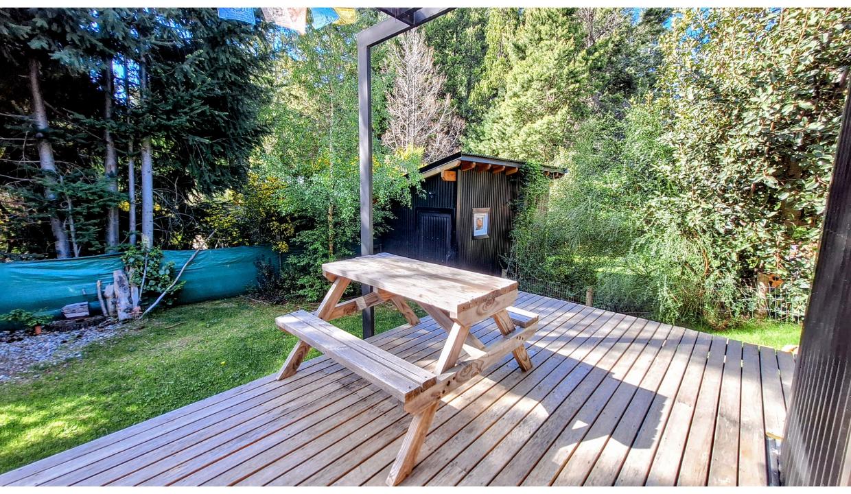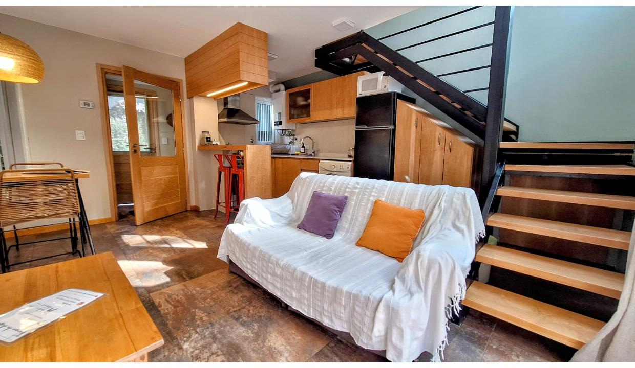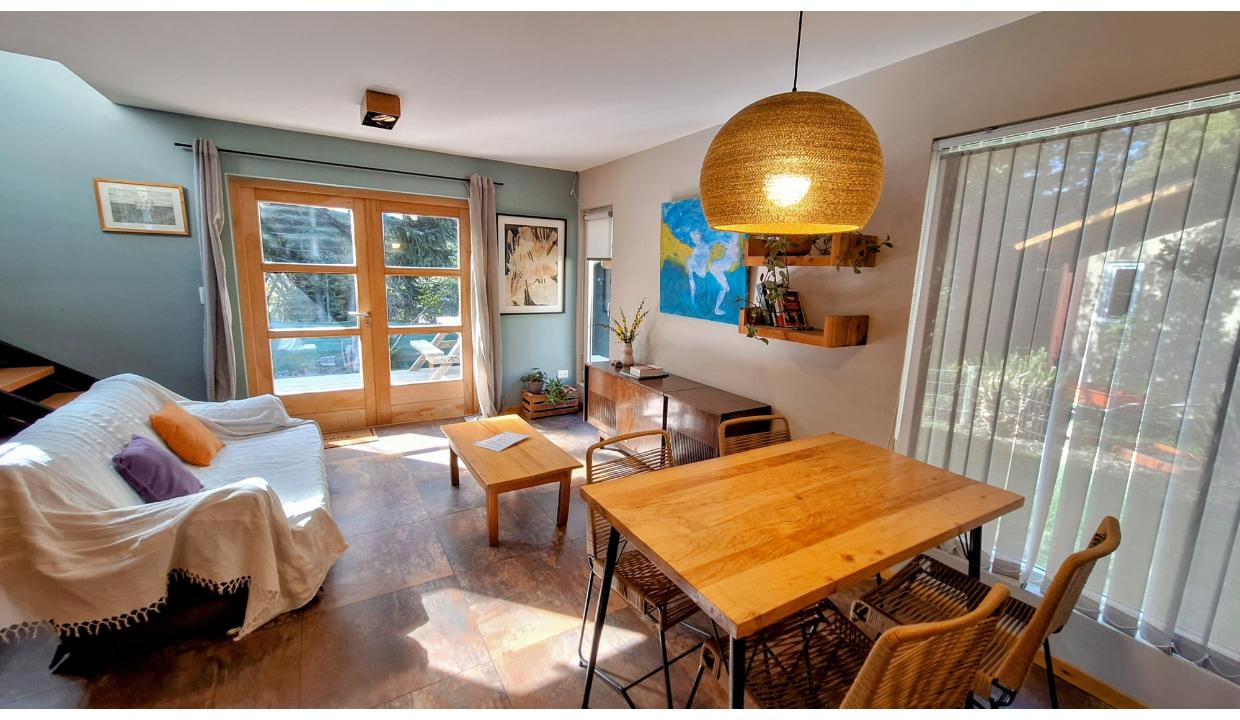 En la planta baja, living comedor, cocina con barra desayunadora, lavarropas. salida al deck donde hay una mesa de madera con bancos para disfritar un rico asado hecho en el chulengo. Wifi, smart tv, ropa blanca. Estacionamiento