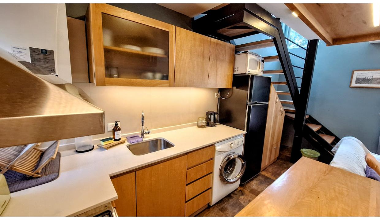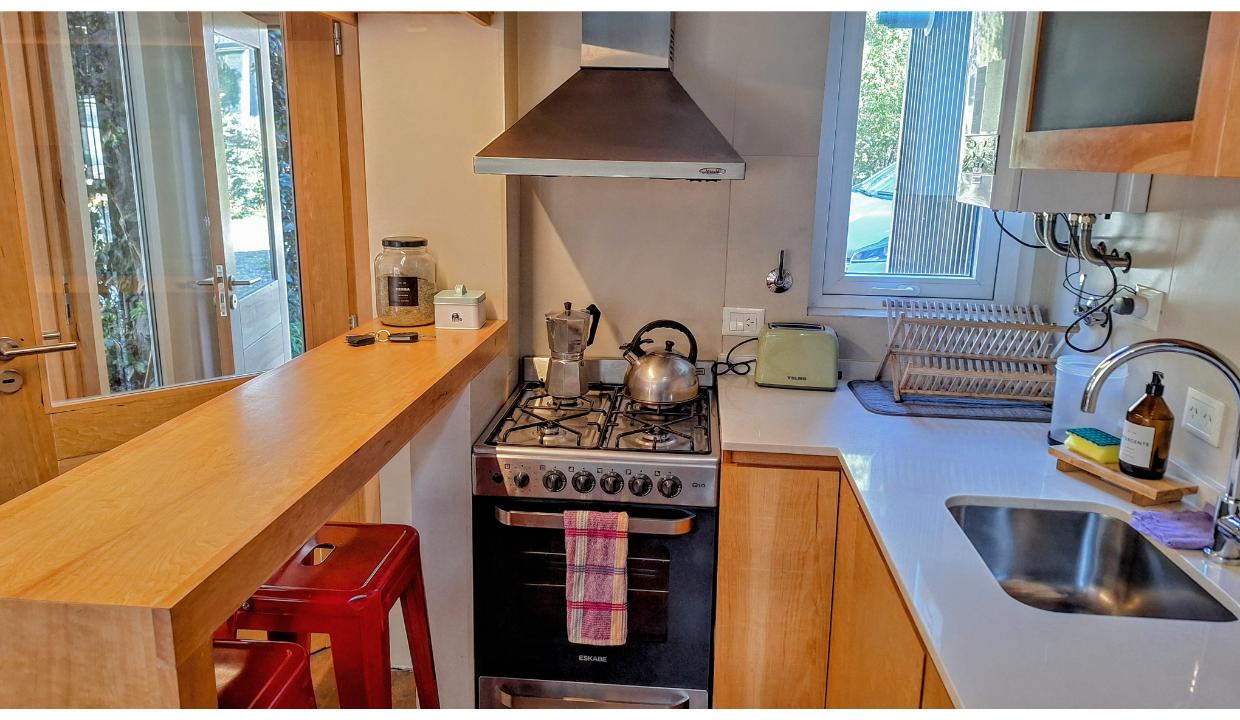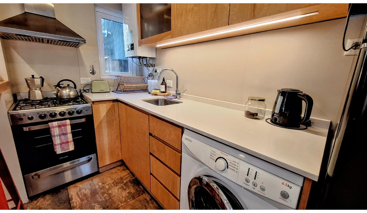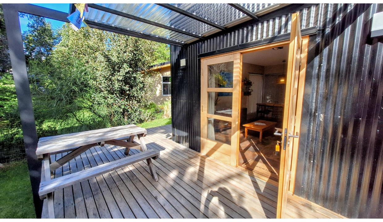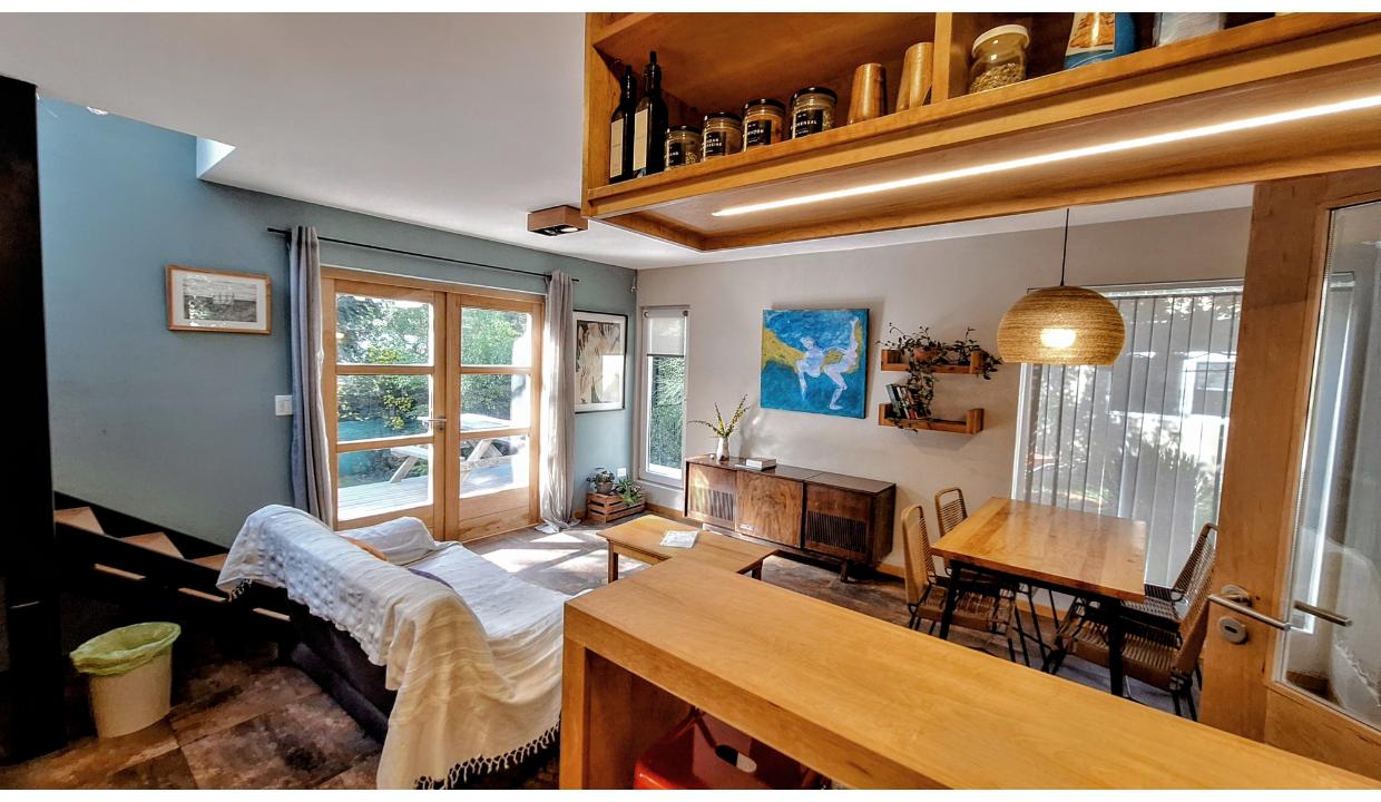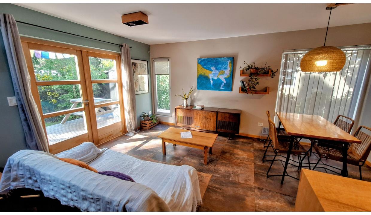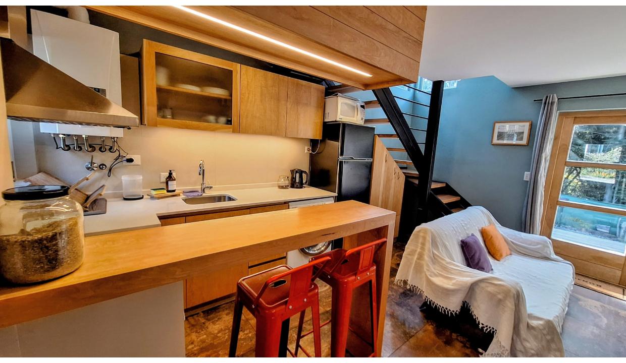 En la planta baja, living comedor, cocina con barra desayunadora, lavarropas. salida al deck donde hay una mesa de madera con bancos para disfritar un rico asado hecho en el chulengo. Wifi, smart tv, ropa blanca. Estacionamiento