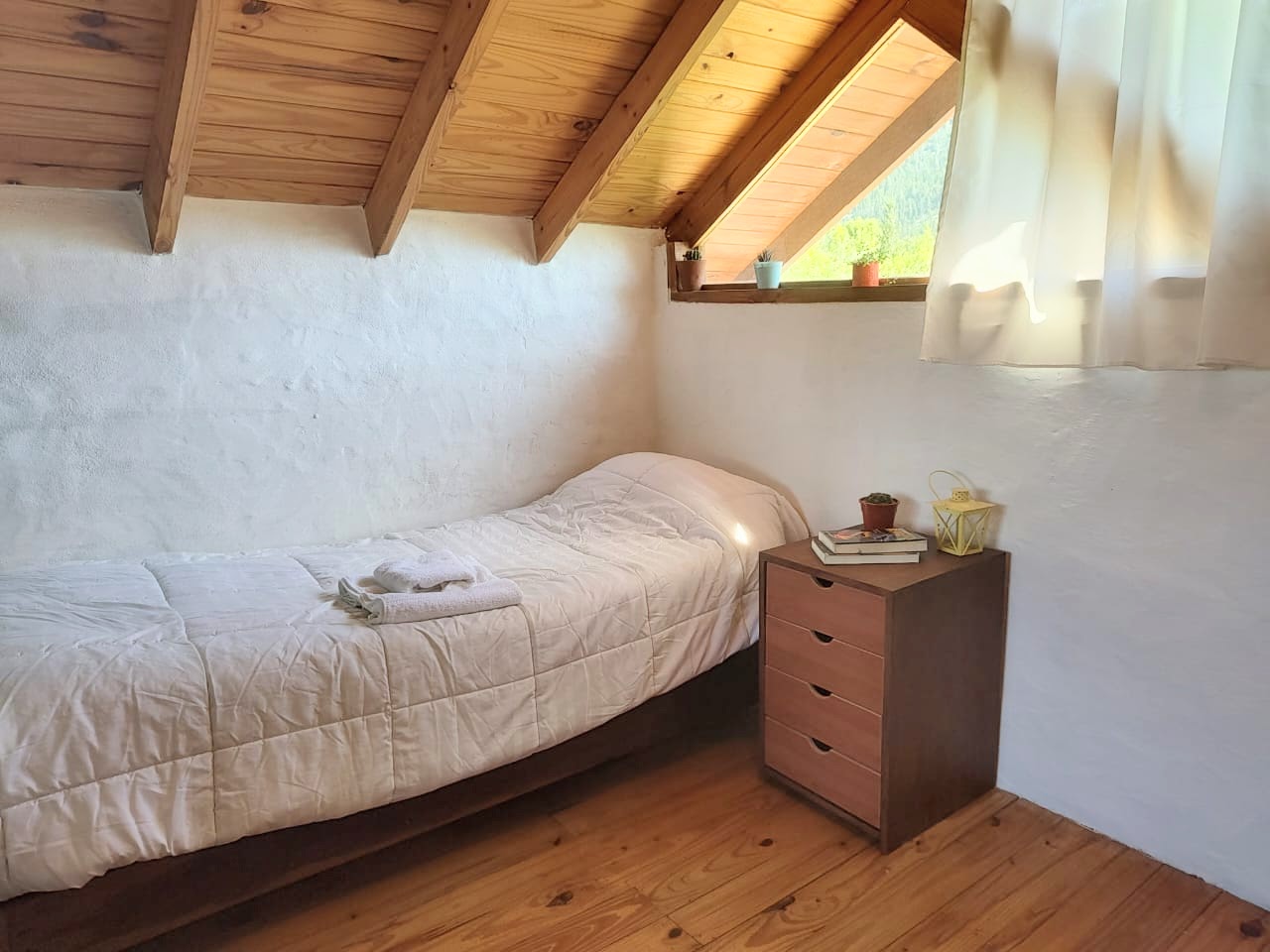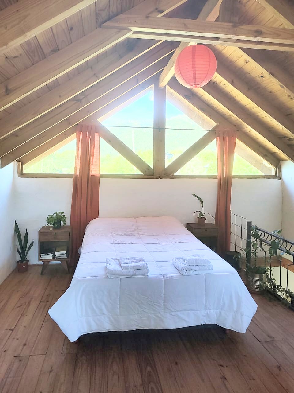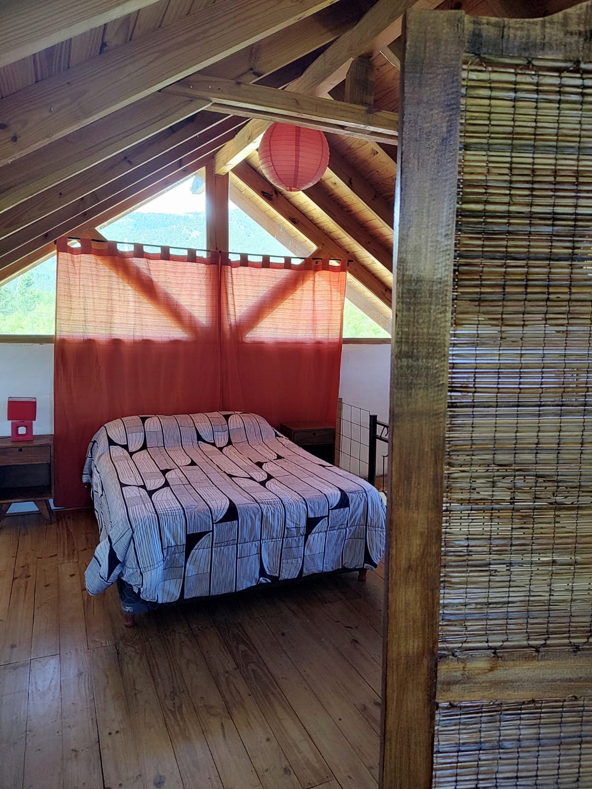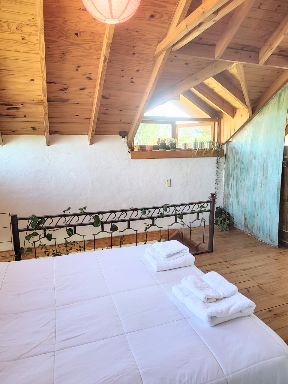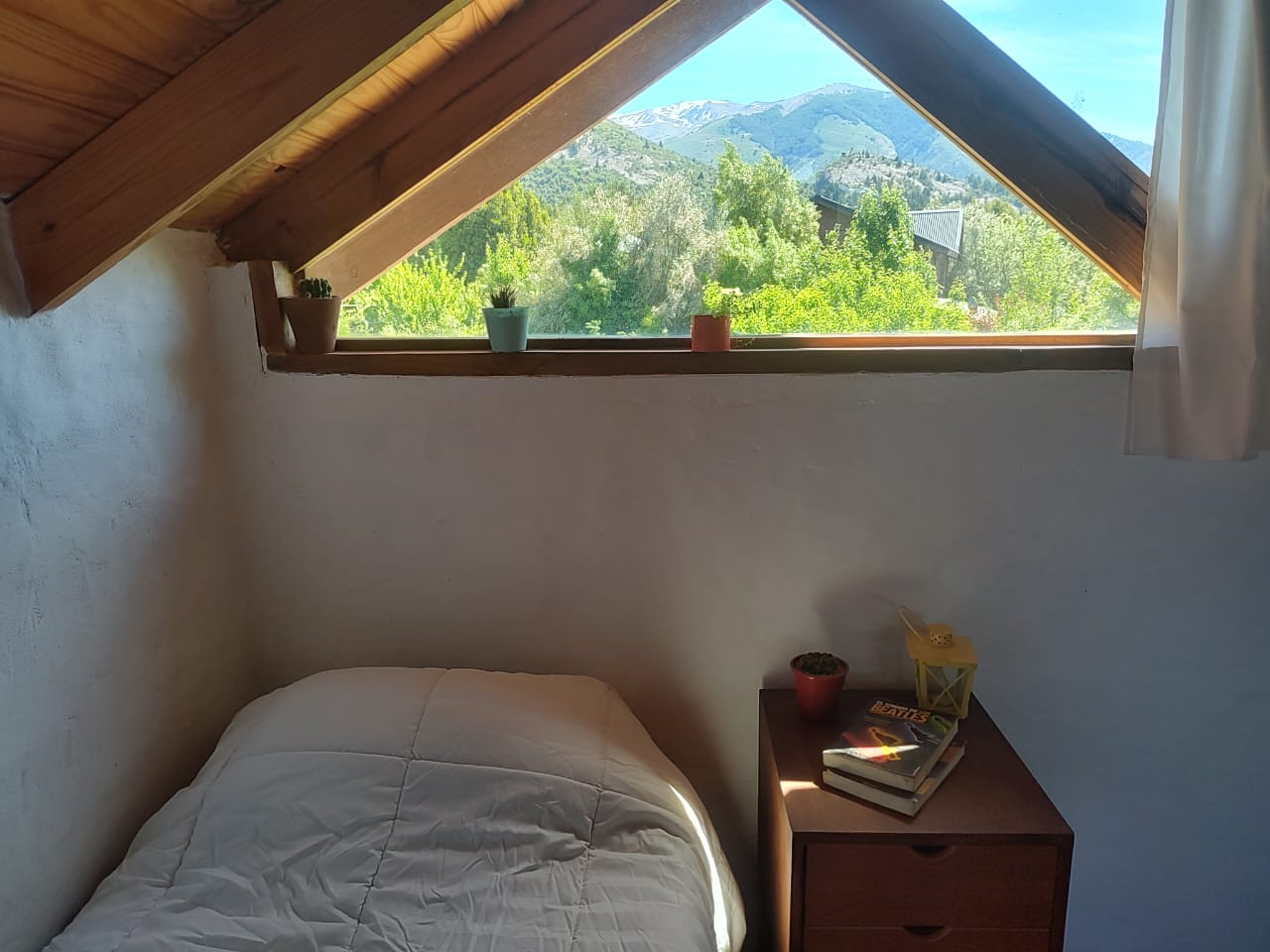 * Planta alta con amplia habitación y hermosa vista. Tiene 1 Cama doble +1 cama simple , separadas por biombo