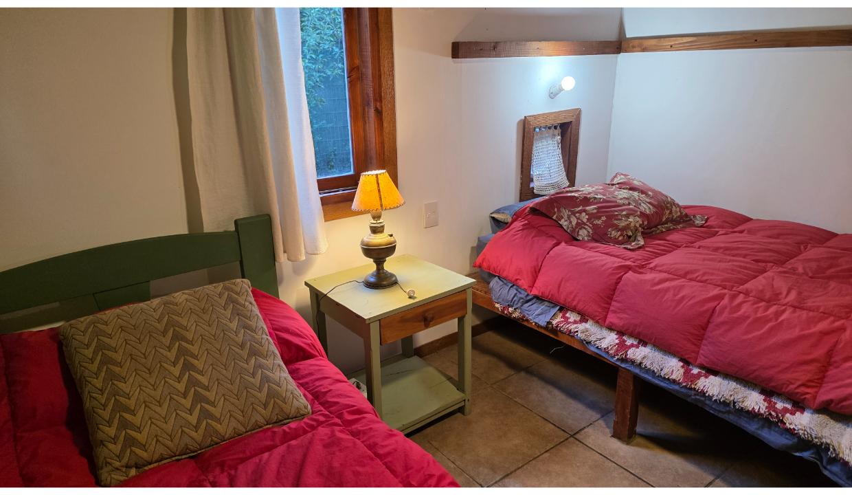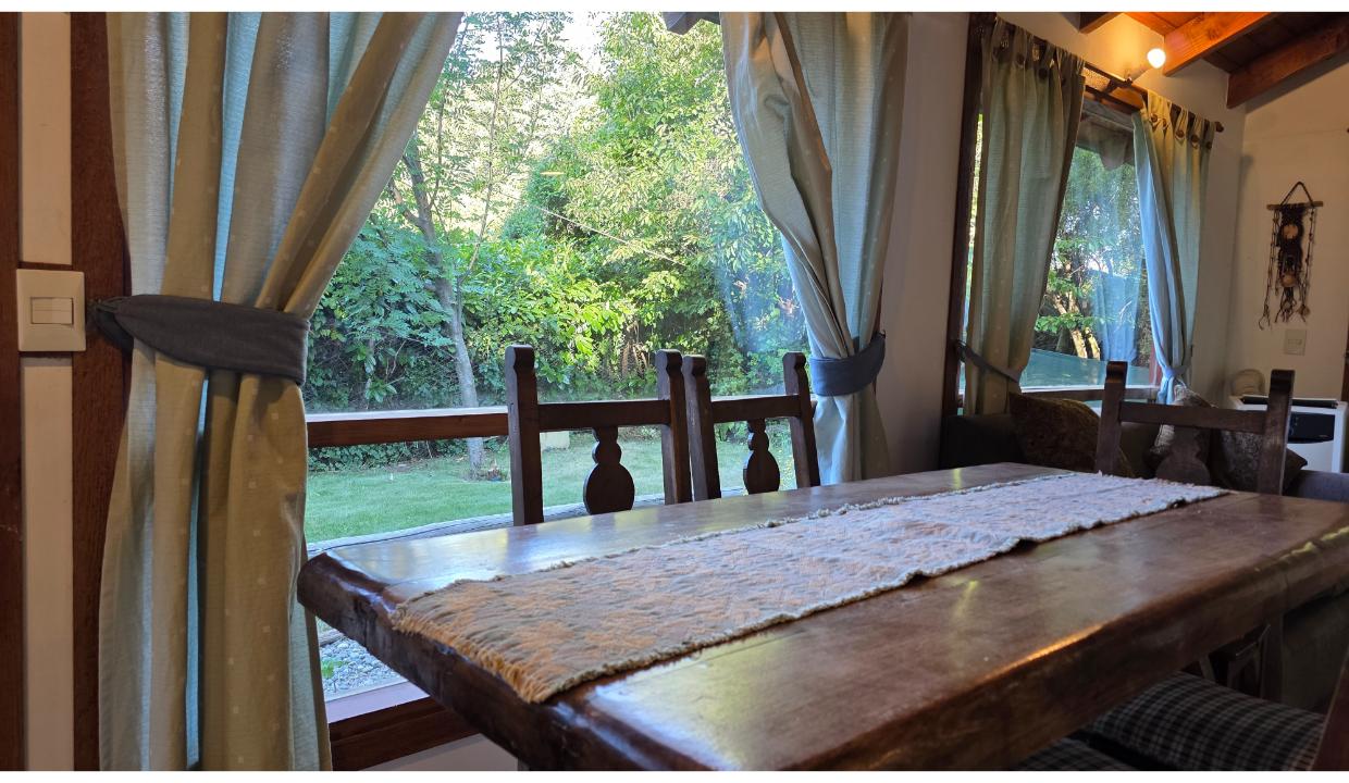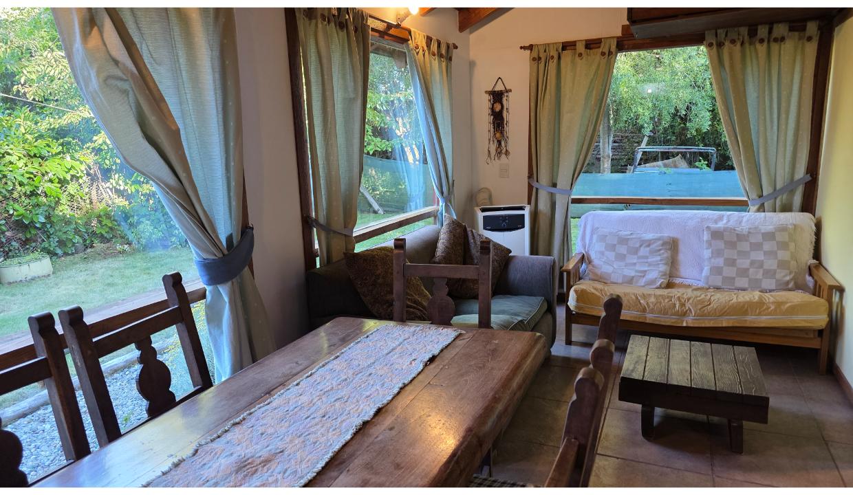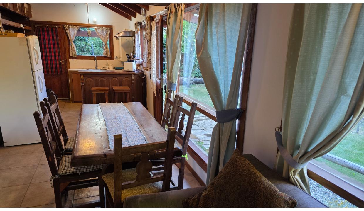 Hermosa cabaña independiente. Cocina completa para que no les falte nada, microondas, heladera con freezer, tostadora etc. Habitación con cama matrimonial y otra habitación con dos camas individuales. comedor amplio super cómodo con tv . aire acondicionado. calefacción tiro balanceado en todos los ambientes. Hermoso jardín exclusivo para disfrutar la naturaleza en familia. estacionamiento dentro del predio. servicio de sábanas y toallas. wifi.