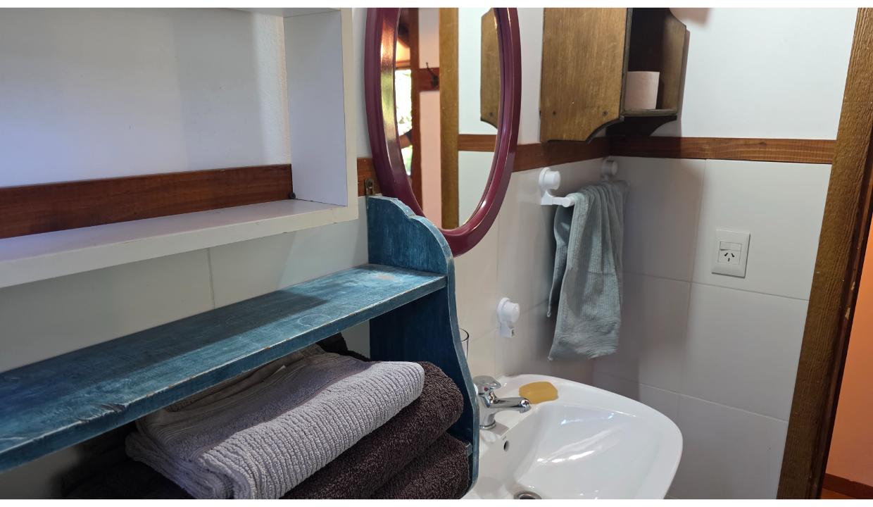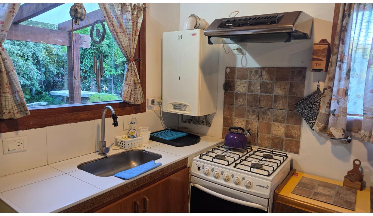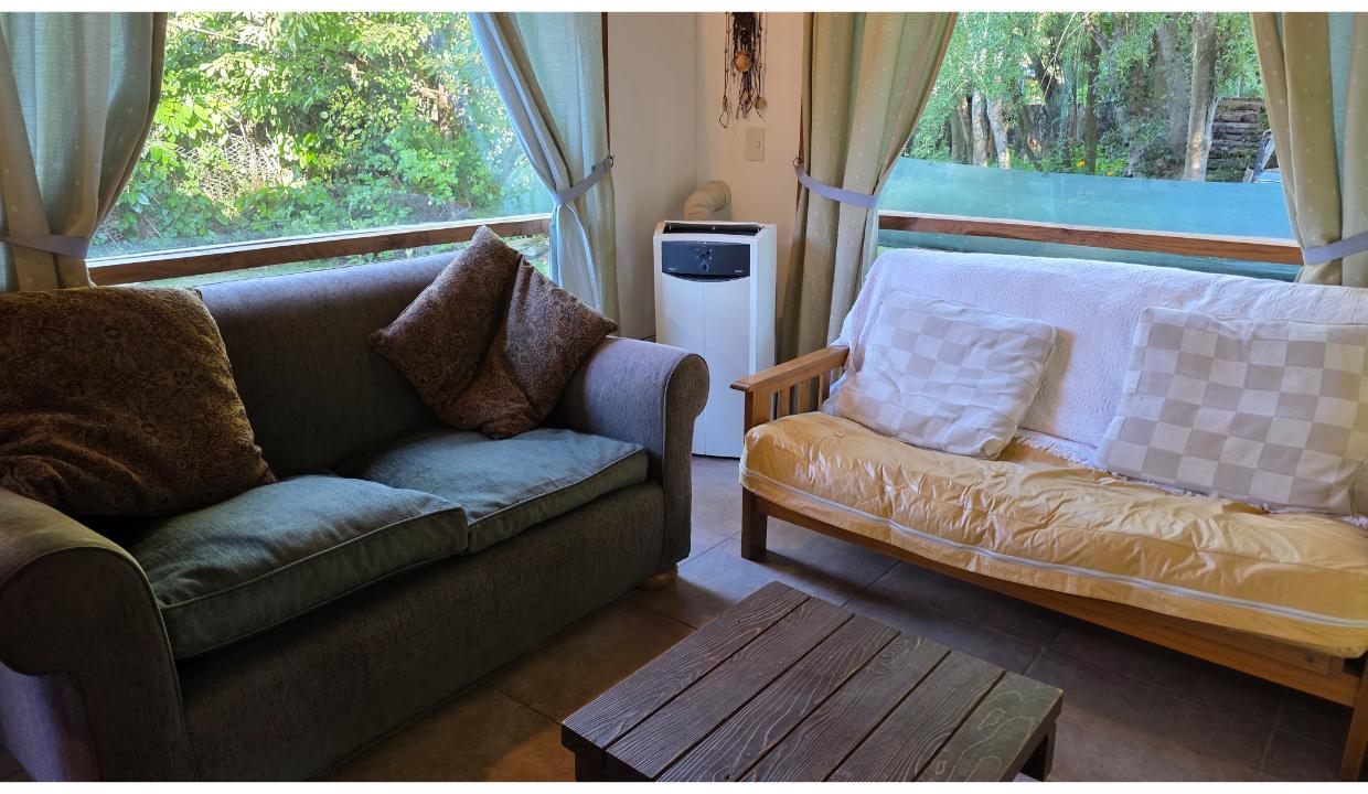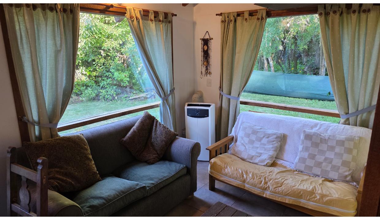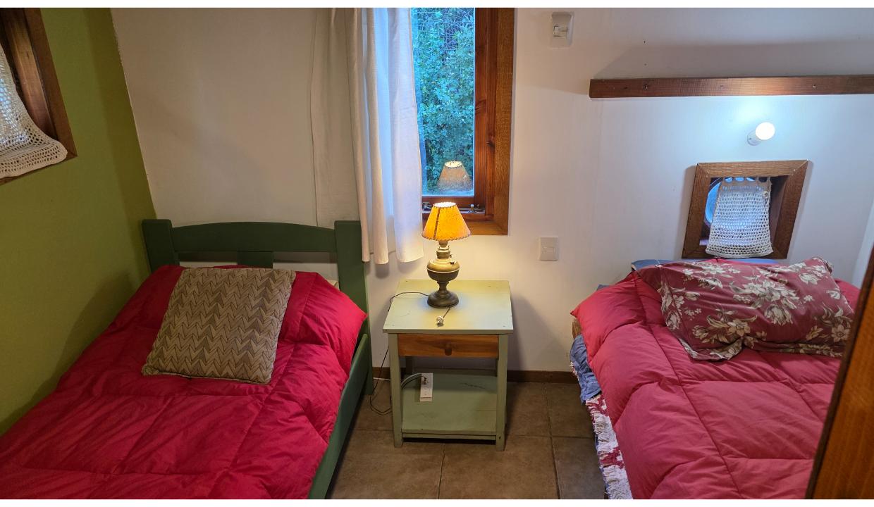 Hermosa cabaña independiente. Cocina completa para que no les falte nada, microondas, heladera con freezer, tostadora etc. Habitación con cama matrimonial y otra habitación con dos camas individuales. comedor amplio super cómodo con tv . aire acondicionado. calefacción tiro balanceado en todos los ambientes. Hermoso jardín exclusivo para disfrutar la naturaleza en familia. estacionamiento dentro del predio. servicio de sábanas y toallas. wifi.