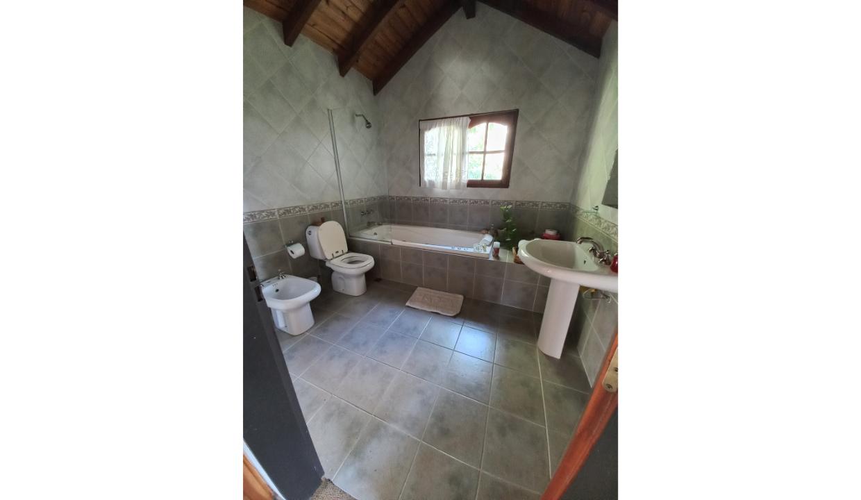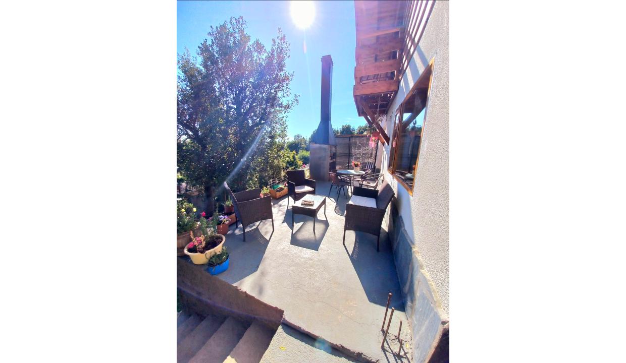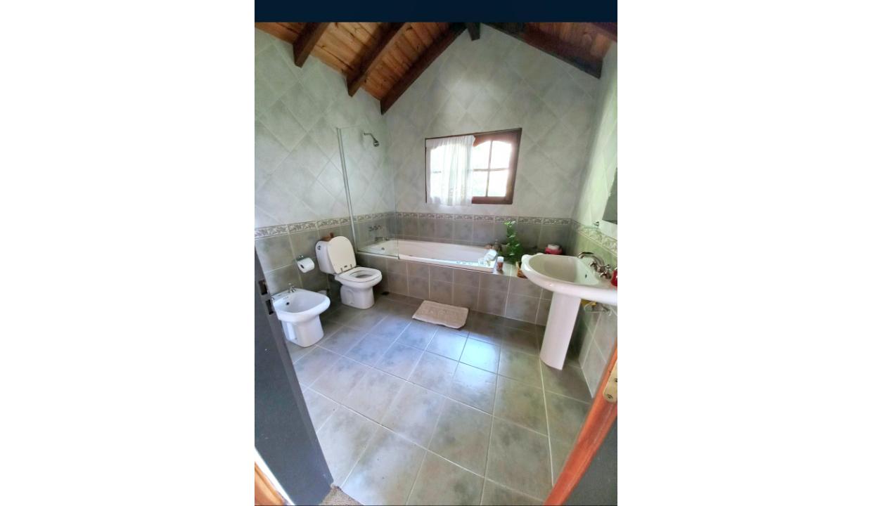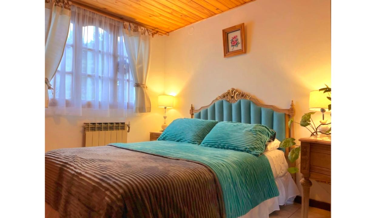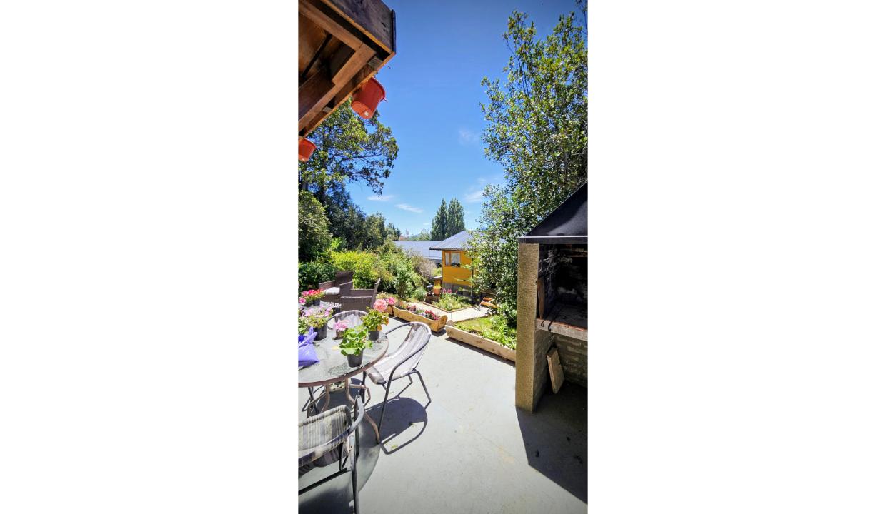 Hermosa casa en dos plantas, ubicada a metros del teleférico cerro otto, cuenta con cochera techada para 2 vehículos. 2 plantas, en planta baja una habitación con cama matrimonial, un baño completo con bañera, living comedor amplio, cocina más lavadero. Planta alta una amplia habitación con cama matrimonial y un sofá cama, baño completo con hidromasaje, y otra habitación con dos camas individuales. Jardín exterior con parilla, deck con sillones y mesa. Vista parcial al lago.