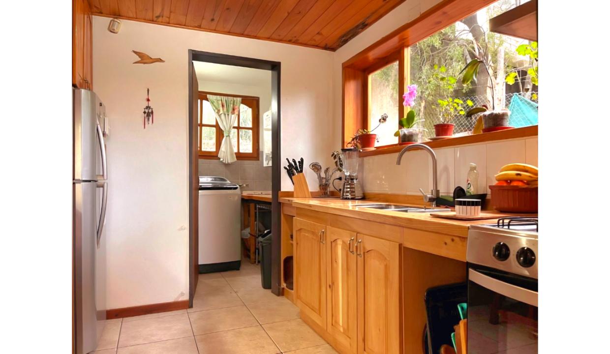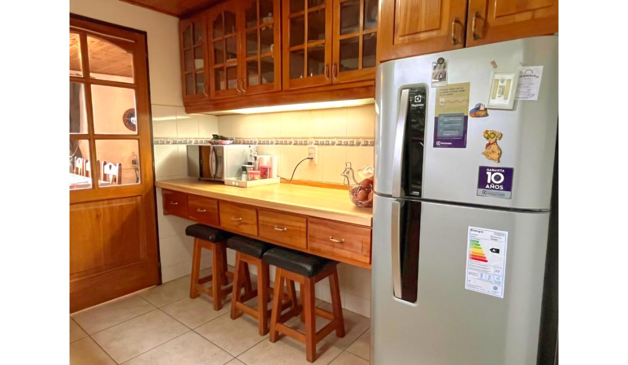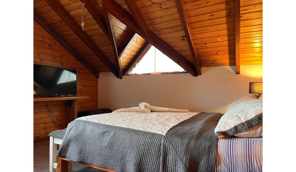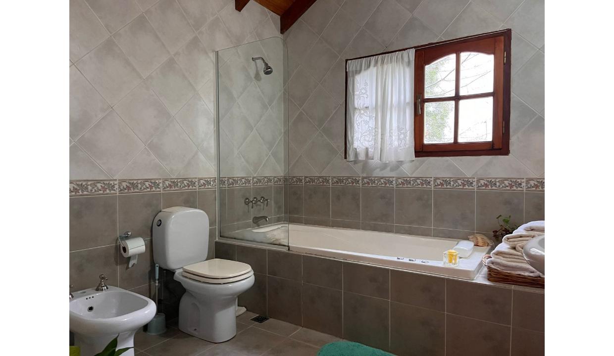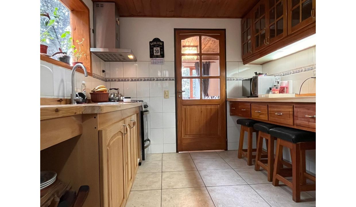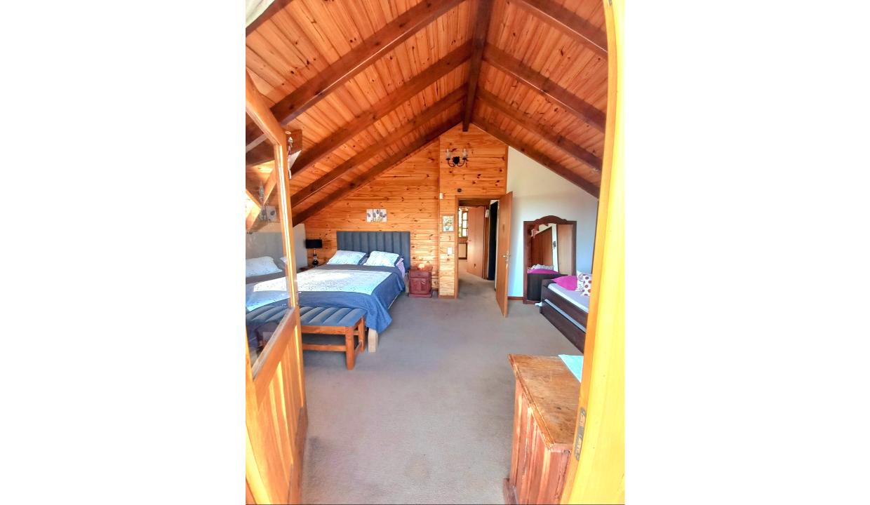 Hermosa casa en dos plantas, ubicada a metros del teleférico cerro otto, cuenta con cochera techada para 2 vehículos. 2 plantas, en planta baja una habitación con cama matrimonial, un baño completo con bañera, living comedor amplio, cocina más lavadero. Planta alta una amplia habitación con cama matrimonial y un sofá cama, baño completo con hidromasaje, y otra habitación con dos camas individuales. Jardín exterior con parilla, deck con sillones y mesa. Vista parcial al lago.