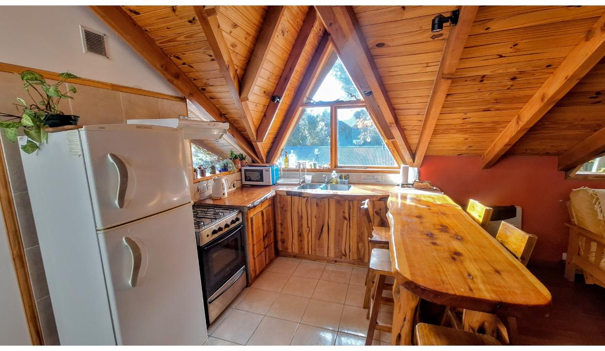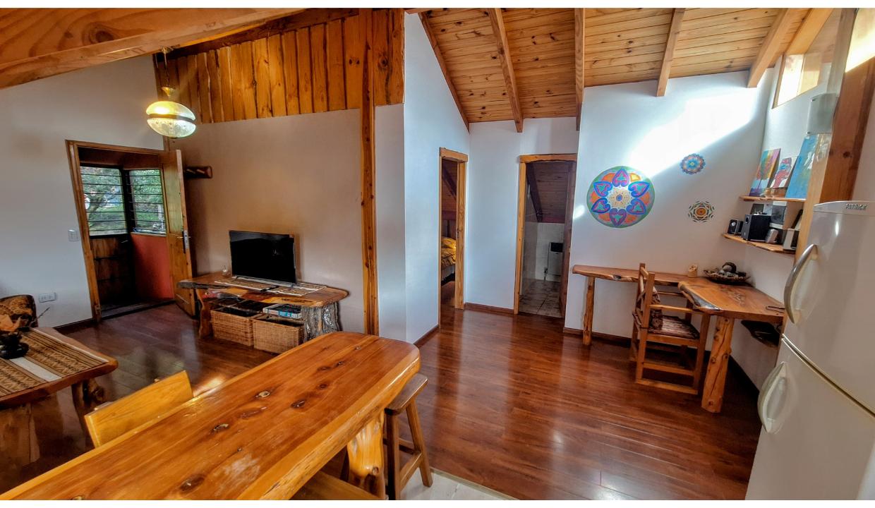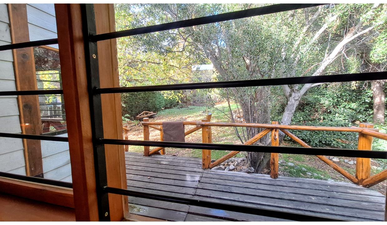 Cabaña a 6 kms del centro, en entorno natural. Cuenta con una habitación matrimonial, living con tv smart y futón 2 plazas para niño, cocina equipada, un baño completo. Amplio jardin compartido con parrilla. El auto se deja en la puerta del complejo en un sector delimitado para ello. Wifi, ropa blanca. Admite una mascota pequeña (consulte)
