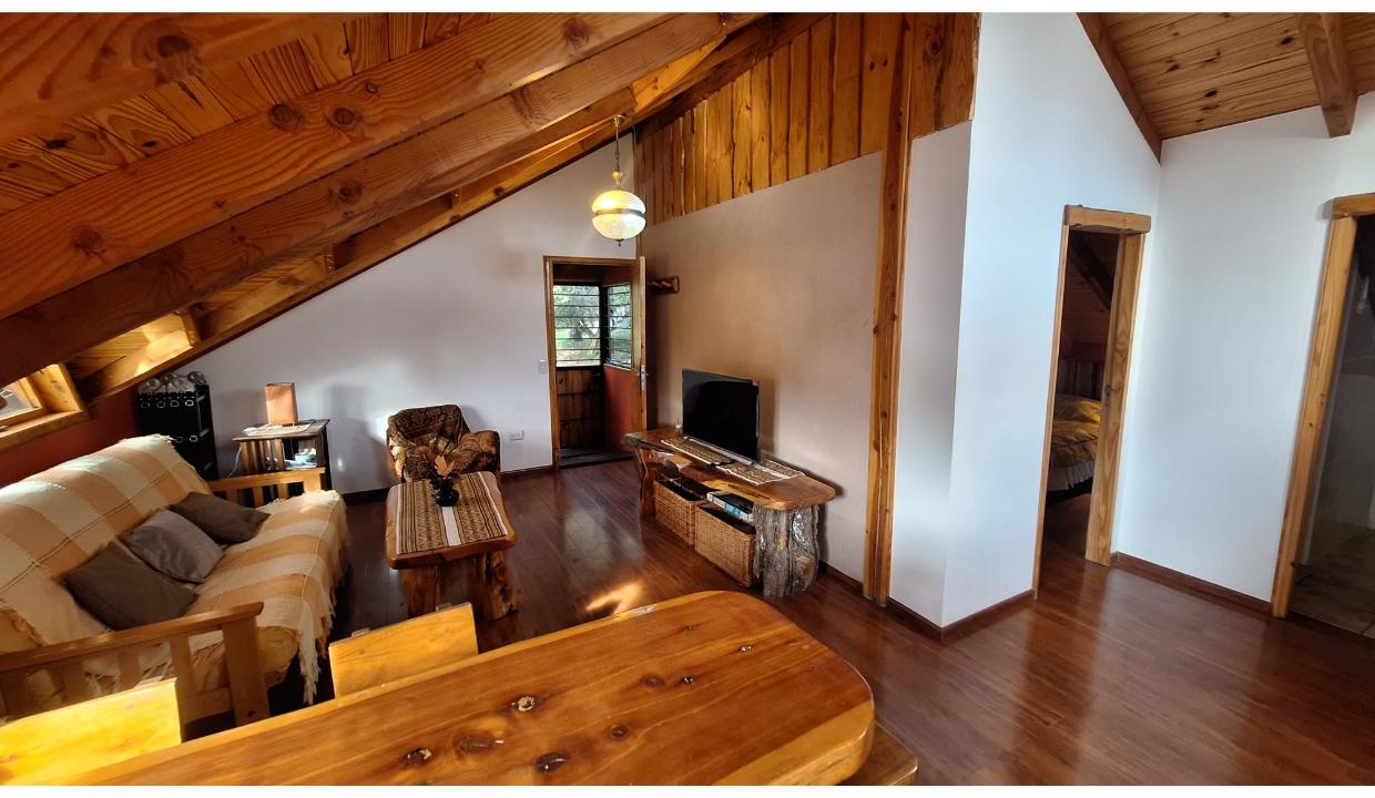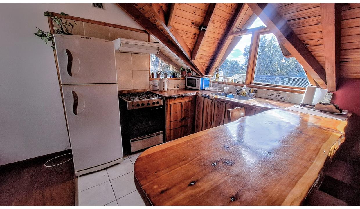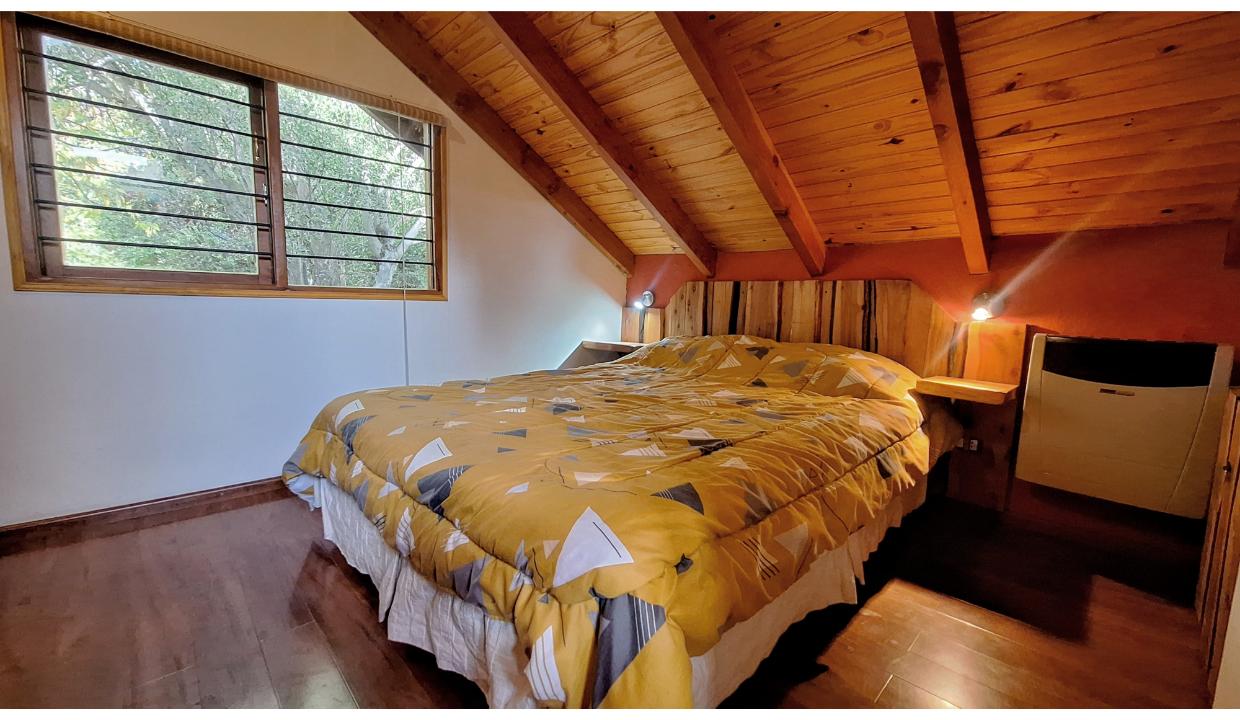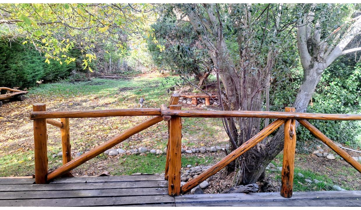 Cabaña a 6 kms del centro, en entorno natural. Cuenta con una habitación matrimonial, living con tv smart y futón 2 plazas para niño, cocina equipada, un baño completo. Amplio jardin compartido con parrilla. El auto se deja en la puerta del complejo en un sector delimitado para ello. Wifi, ropa blanca. Admite una mascota pequeña (consulte)