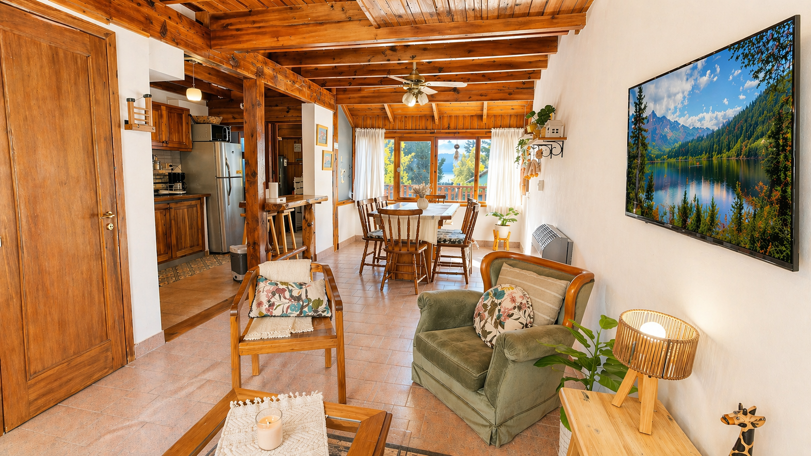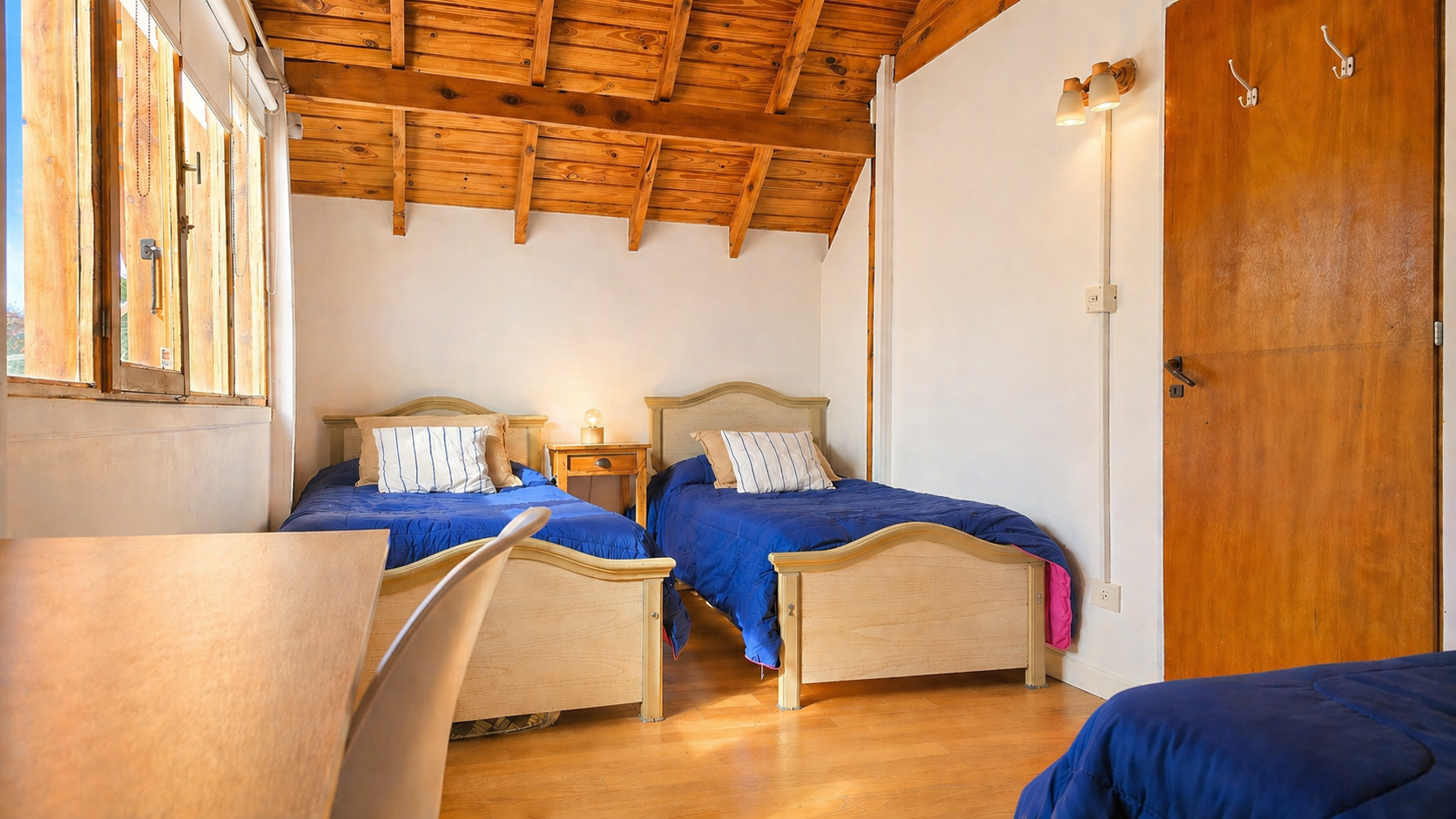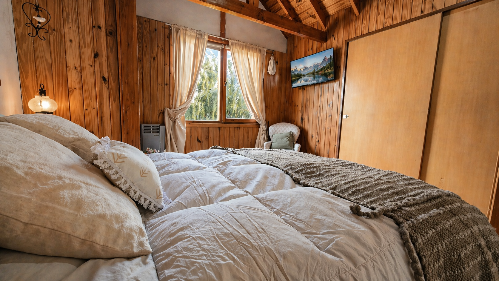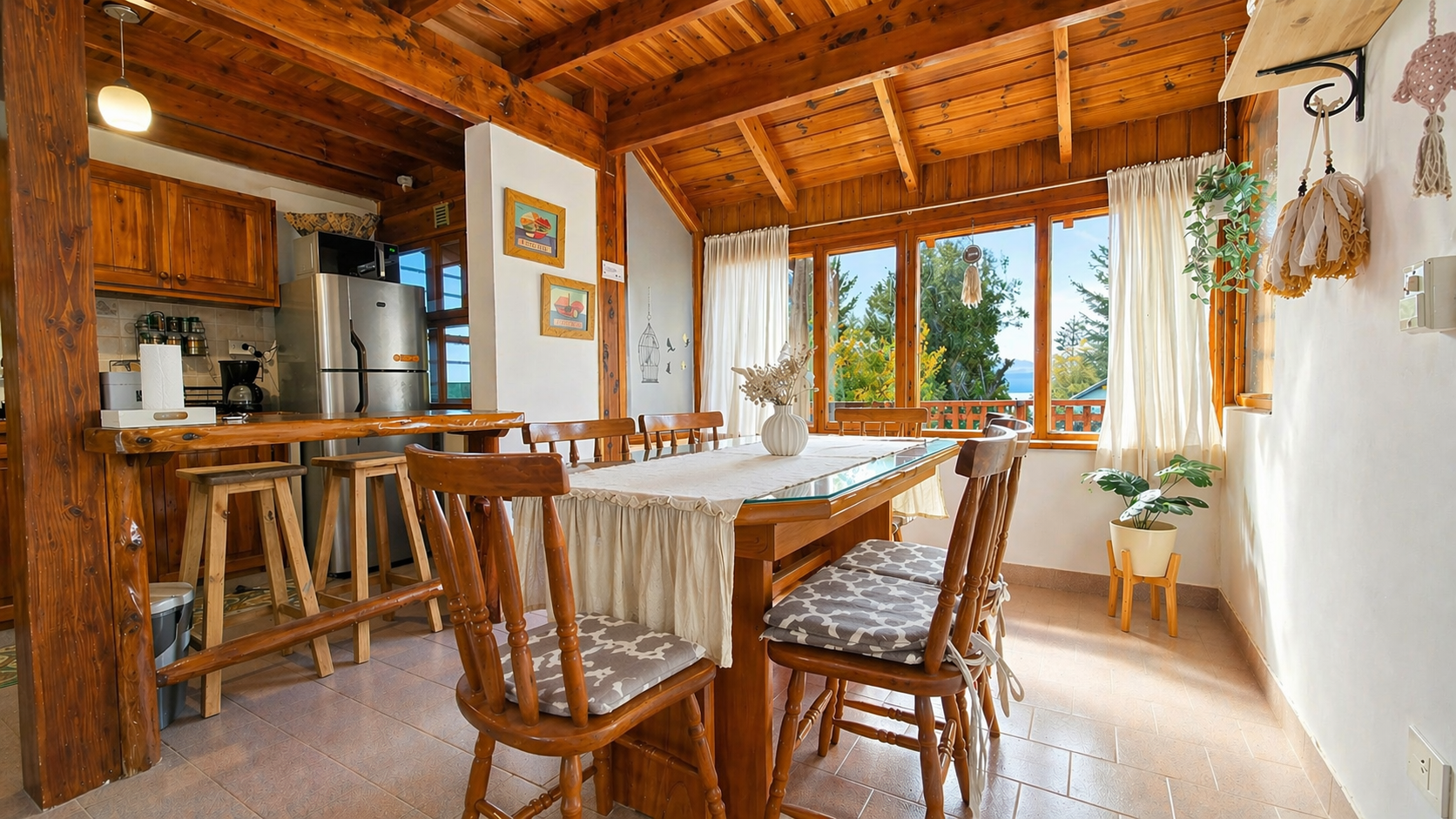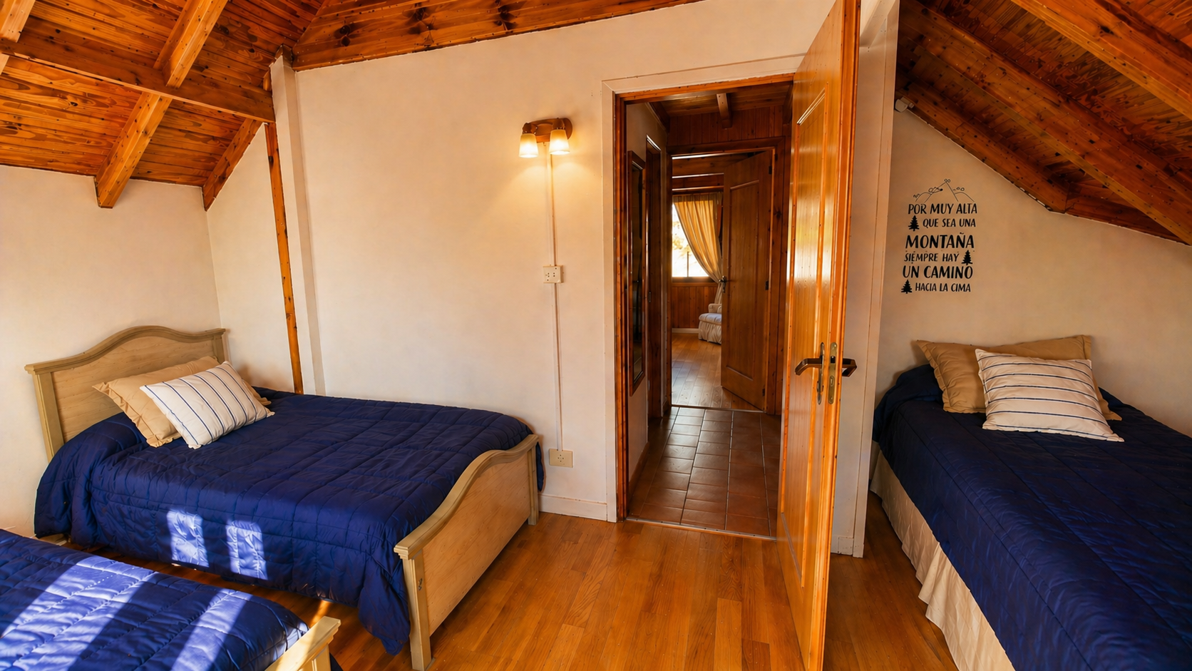 Casa de estilo patagónico en el corazón de barrio Melipal, una ubicación tranquila y a la vez estratégica, con fácil acceso y cercanía a comercios y principales atractivos de Bariloche. Distribuida en dos plantas, la propiedad ofrece espacios amplios y funcionales. En planta baja cuenta con recibidor, un cómodo y luminoso living comedor con toilette, cocina totalmente equipada y lavadero con salida a un deck, ideal para disfrutar momentos al aire libre en familia. En planta alta se encuentran dos habitaciones: una matrimonial y otra con tres camas individuales, acompañadas por un baño completo con bañera. Además, dispone de estacionamiento con portón automático, sistema de alarma, jardín parquizado de uso exclusivo y parrilla, completando una propuesta perfecta para una estadía cómoda y relajada.