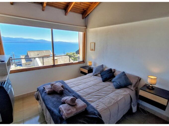 Departamento monoambiente interno con espectacular vista al lago. Cuenta con cama matrimonial, calefacción tiro balanceado,…